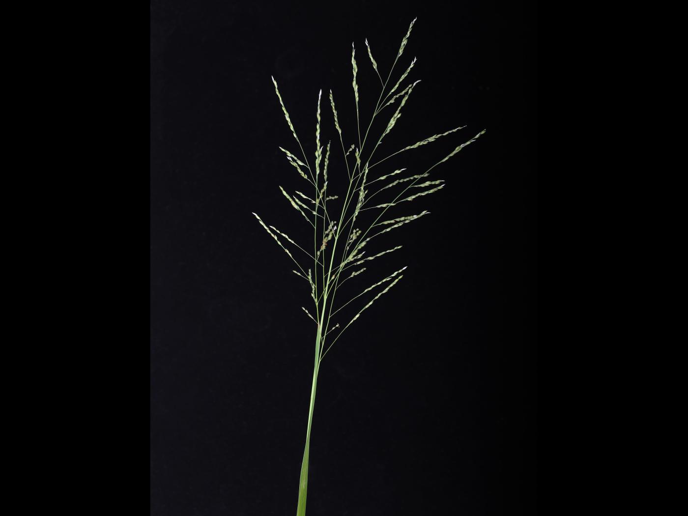 L’inflorescence se compose d’une panicule ramifiée, diffuse, relâchée, peu ou pas dégagée de la gaine et mesure de 4 à 40 cm. Les branches mesurent jusqu’à 15 cm de longueur et sont scabres. Les pédicelles sont scabres, anguleux et mesurent de 1 à 6 mm. Les épillets sont de forme elliptique et mesurent de 1,8 à 3,8 mm de longueur. Ils sont colorés de vert pâle à rouge pourpre. Ils se composent d’un fleuron stérile et d’un fleuron fertile. La glume inférieure mesure de 0,6 à 1,2 mm et comprend jusqu’à 3 nervures. La glume supérieure mesure de 1,7 à 3,1 mm et comprend de 7 à 9 nervures. La glume supérieure et le lemme inférieur entourent le fleuron fertile.