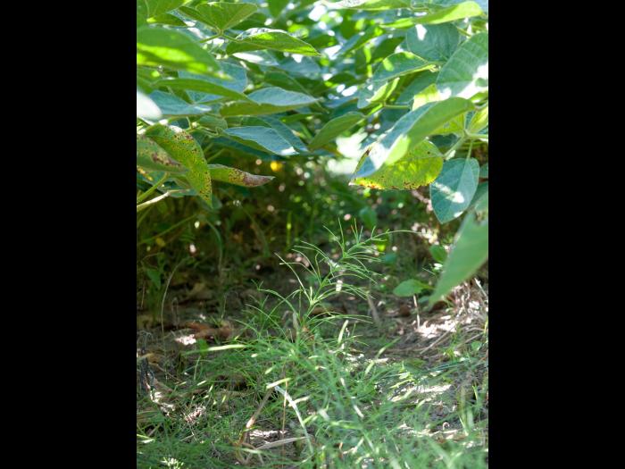 La prêle des champs est encore verte au moment du battage et peut tacher les grains (soya) récoltés. Il y a alors présence de taches noires très persistantes sur les grains qui diminuent la qualité de la récolte.