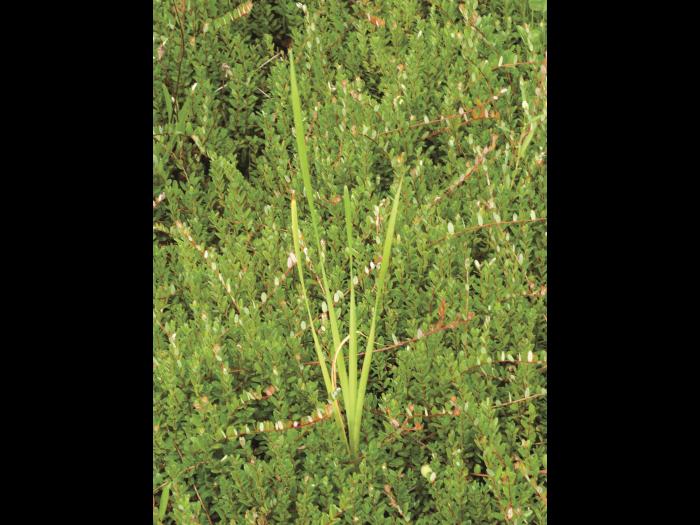 Légende: Plants, stade végétatif, dans un champ de canneberges