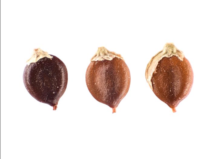 Le fruit est un akène lenticulaire mesurant de 2,5 à 3 mm. Il est brun à noir, luisant, lisse et aplati.