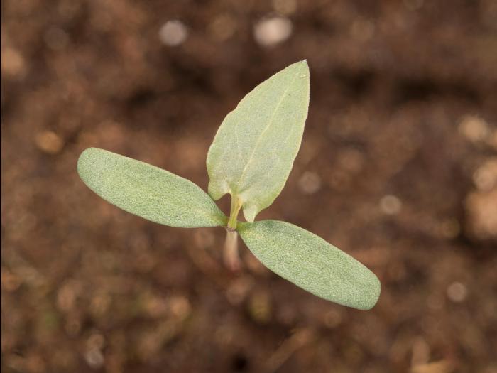 La plantule est à tige et à feuilles alternes. Les cotylédons sont de forme allongée mesurant de 10 à 25 mm de longueur. La nervure centrale est bien visible, la face inférieure est verte et comprend parfois des plages rosées. Les premières feuilles sont semblables aux feuilles matures et sont de couleur vert mat.