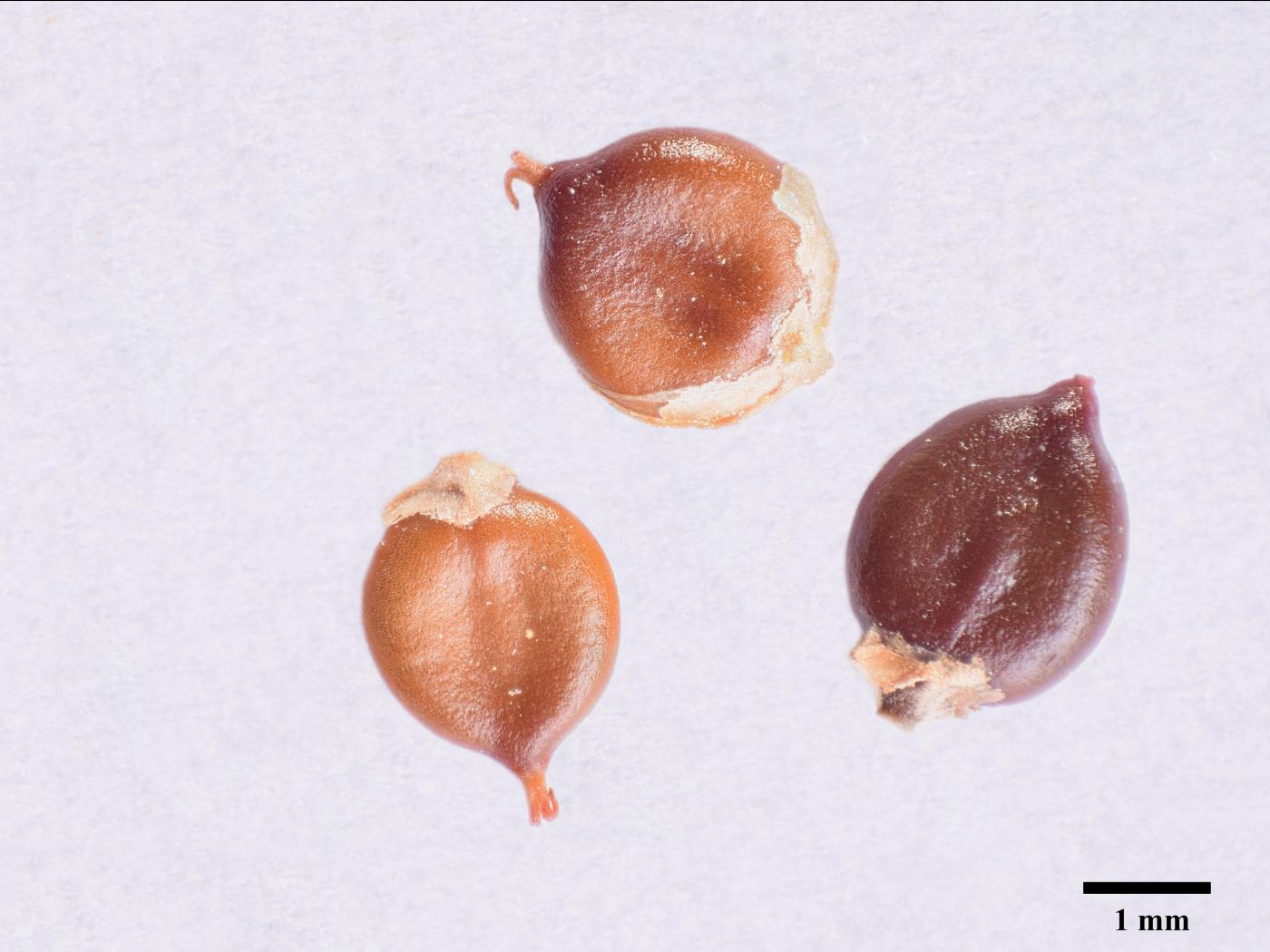 Le fruit est un akène lenticulaire ou trigone mesurant de 2 à 2,7 mm de longueur. Il est lisse, luisant et de couleur noire.