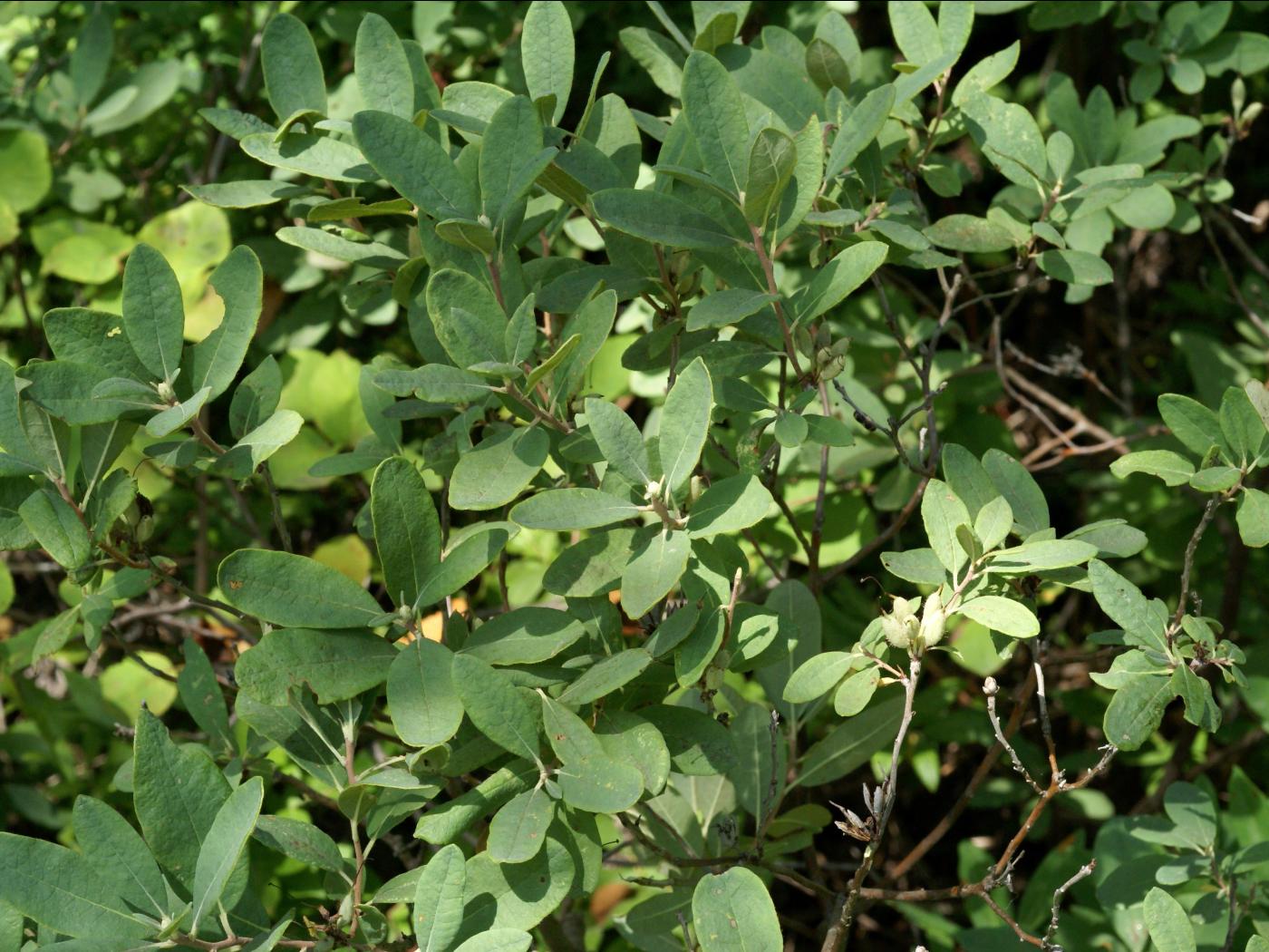 Les feuilles sont elliptiques, simples, à marge entière et peuvent atteindre 6 cm de longueur. Elles sont de couleur vert plus pâle sur la face inférieure et finement pubescentes, mais deviennent glabres avec l’âge. Elles sont alternes sur la tige et courtement pétiolées.