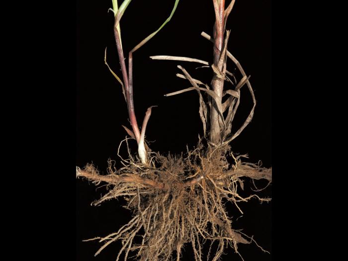 Légende: Gaine teintée de rouge et entourant la tige aux nœuds