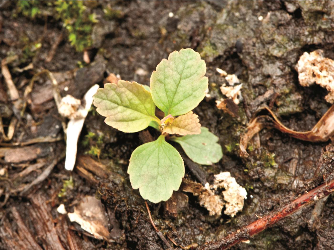 Les feuilles des plantules et des jeunes pousses sont semblables à celles de la plante adulte.
