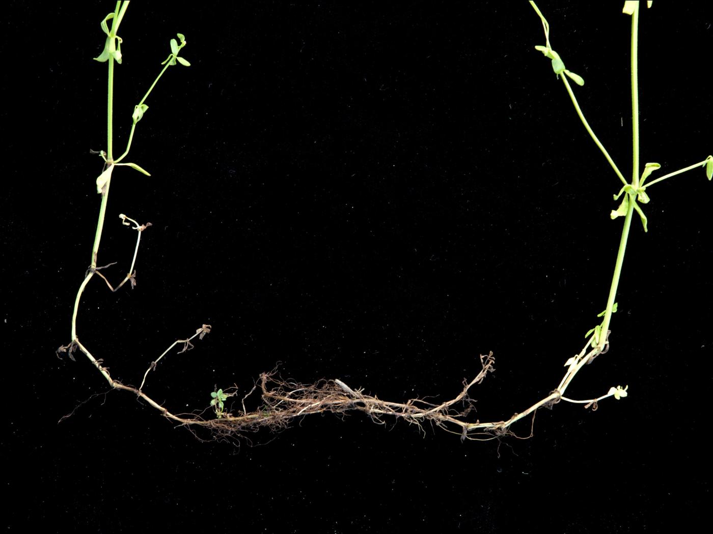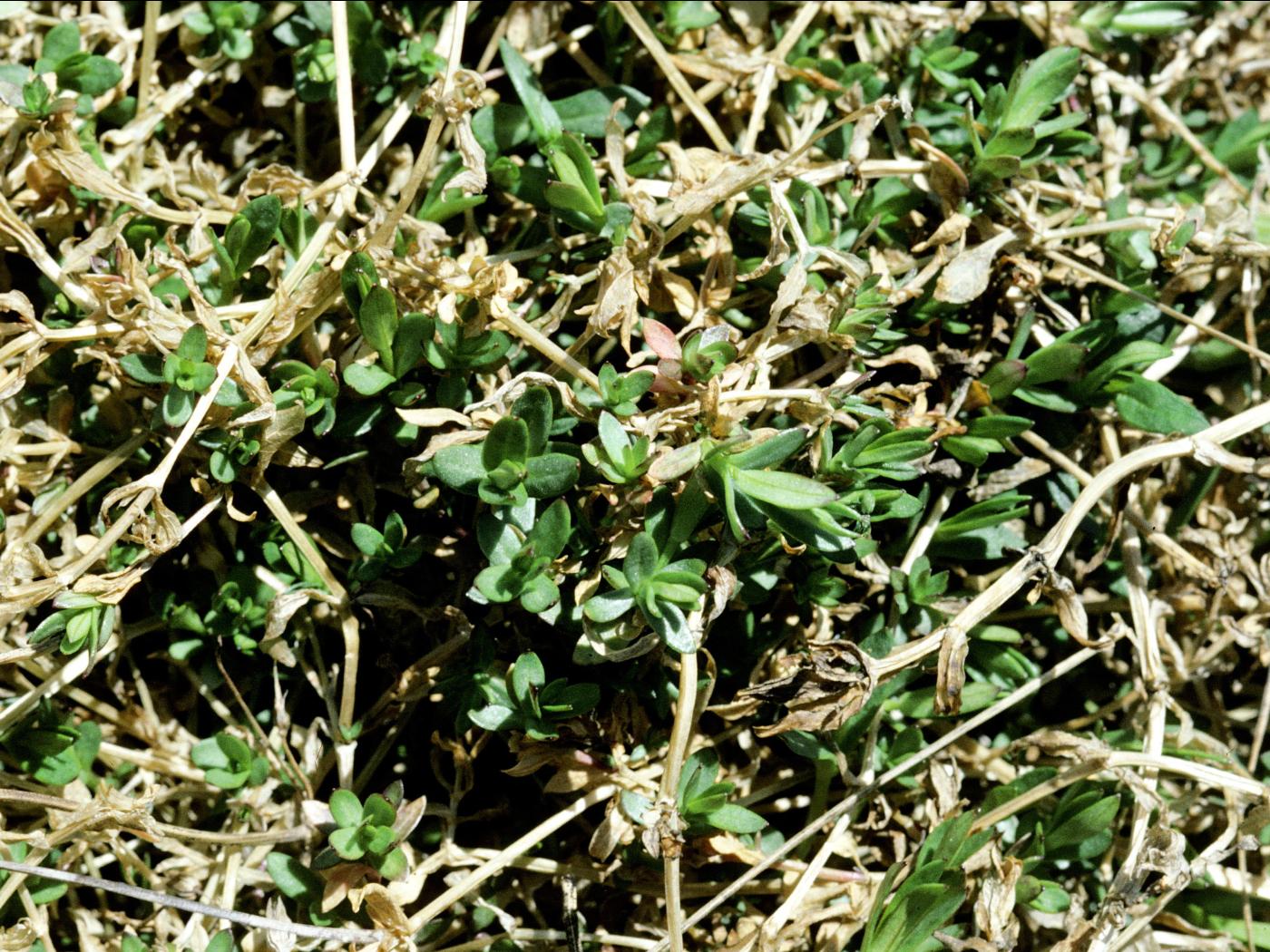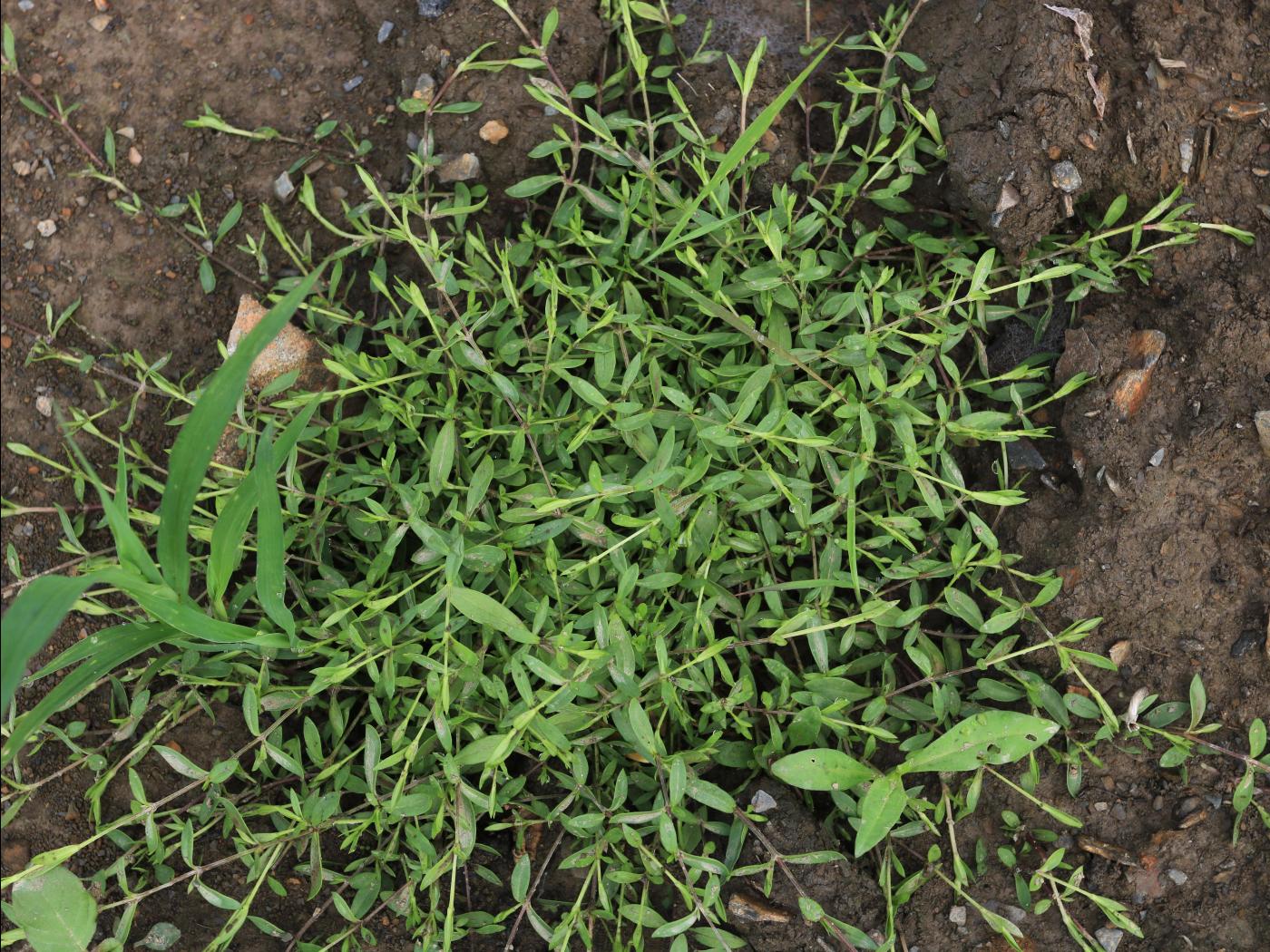 La plantule est à tige et à feuilles opposées. Les cotylédons sont de forme oblongue à allongée avec un sommet en pointe. Ils mesurent de 5 à 10 mm de longueur. Les premières feuilles sont entières, ovales et terminées en pointe. Elles ressemblent aux cotylédons. Des pousses végétatives proviennent des tiges couchées sur le sol dont les nœuds se sont enracinés.