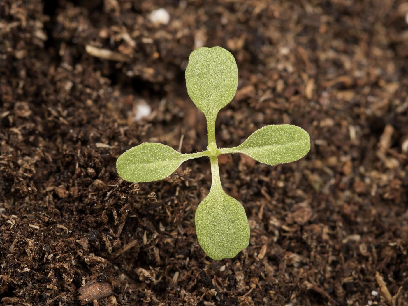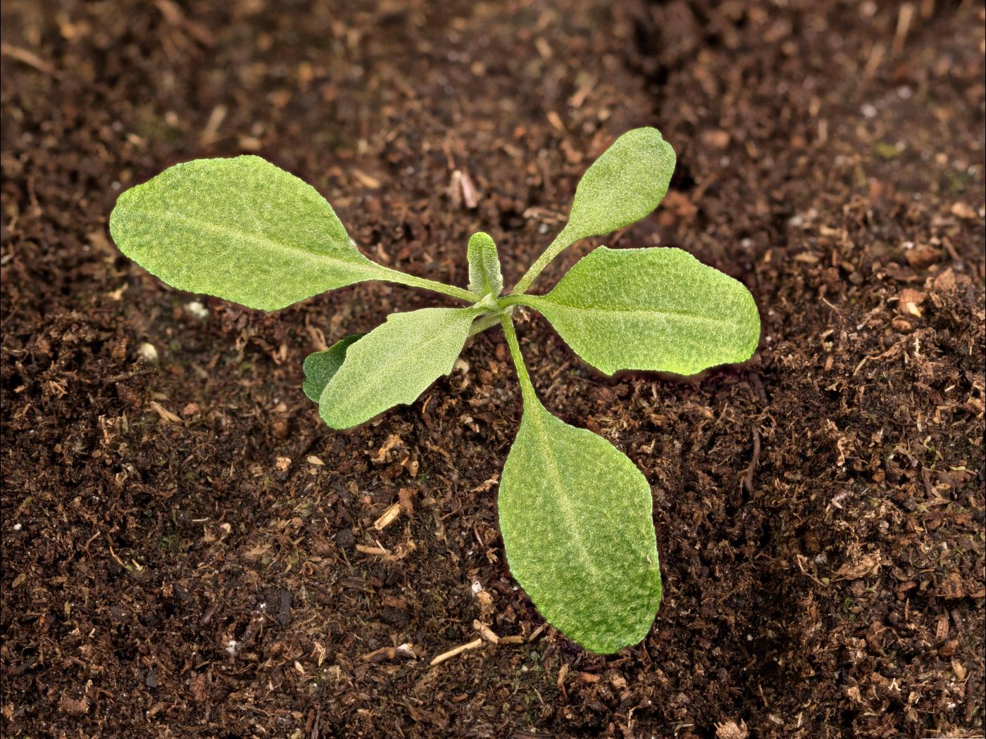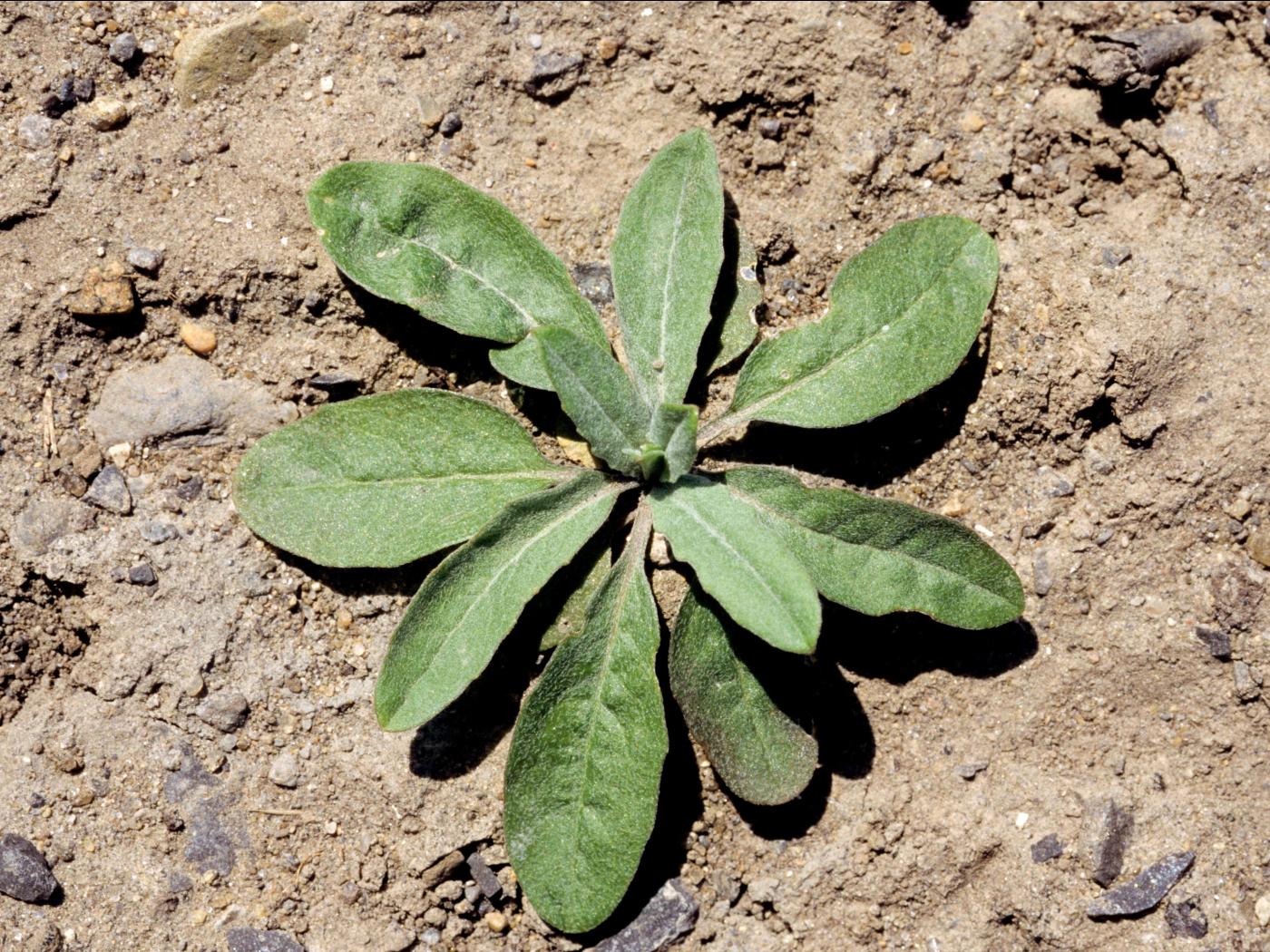 La plantule se compose de feuilles alternes disposées en rosette. Les cotylédons sont oblongs à sommet arrondi et mesurent de 3 à 6 mm de long. Les deux premières feuilles sont entières et opposées, les suivantes sont alternes.