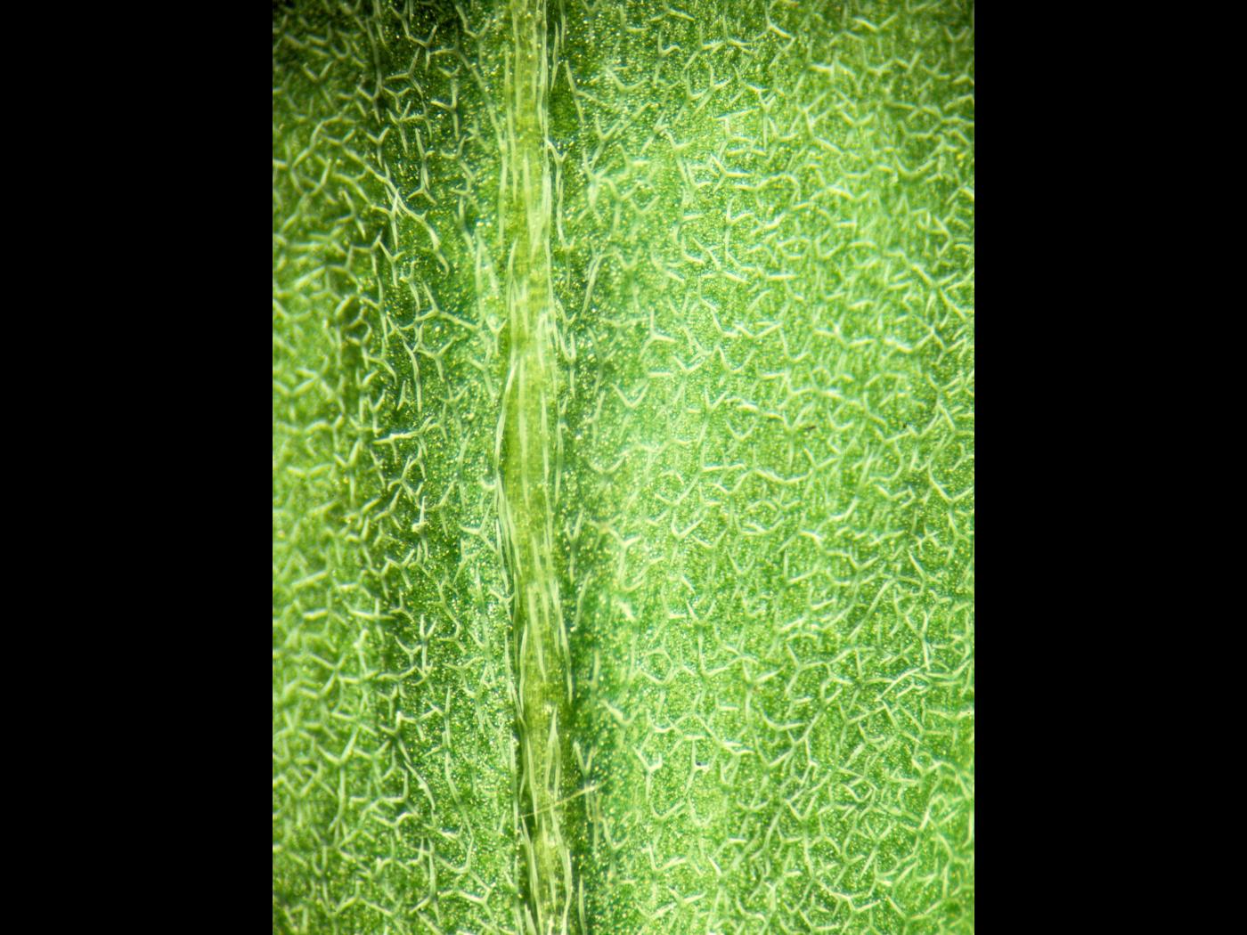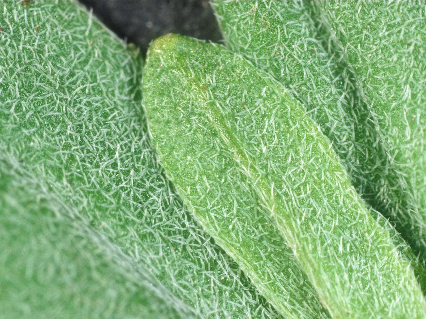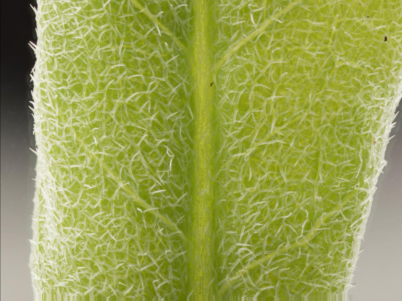 Légende: Détails des feuilles, présence de poils ramifiés à 2 ou 3 branches (visible à la loupe)