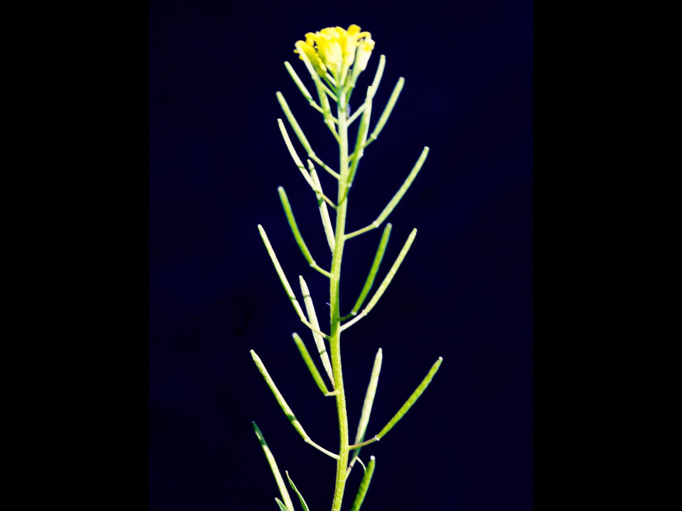 Légende: Infrutescence, fleurs jaunes et siliques droites