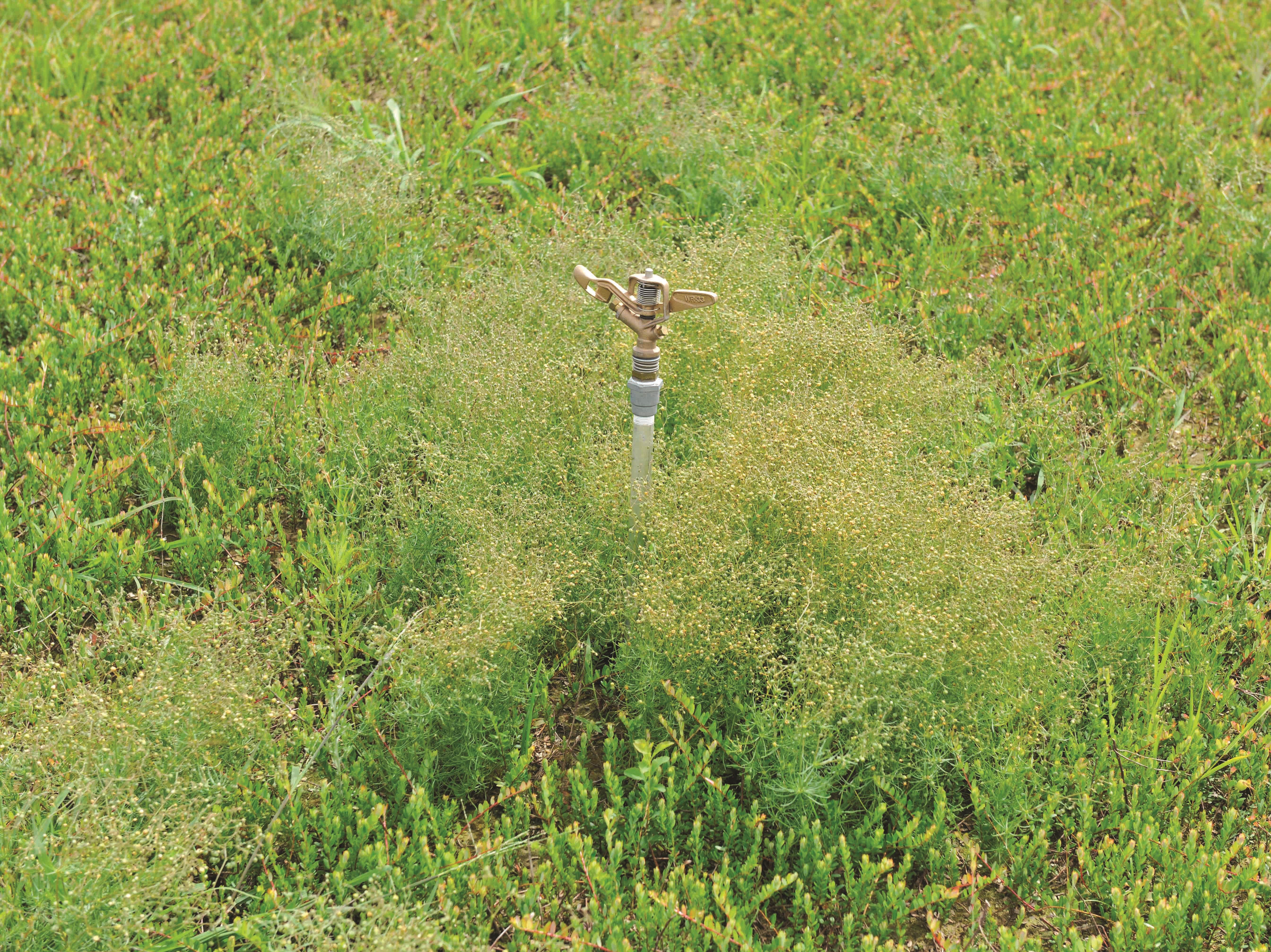 Plants dans un champ de canneberges (autour d'une buse d'irrigation)
