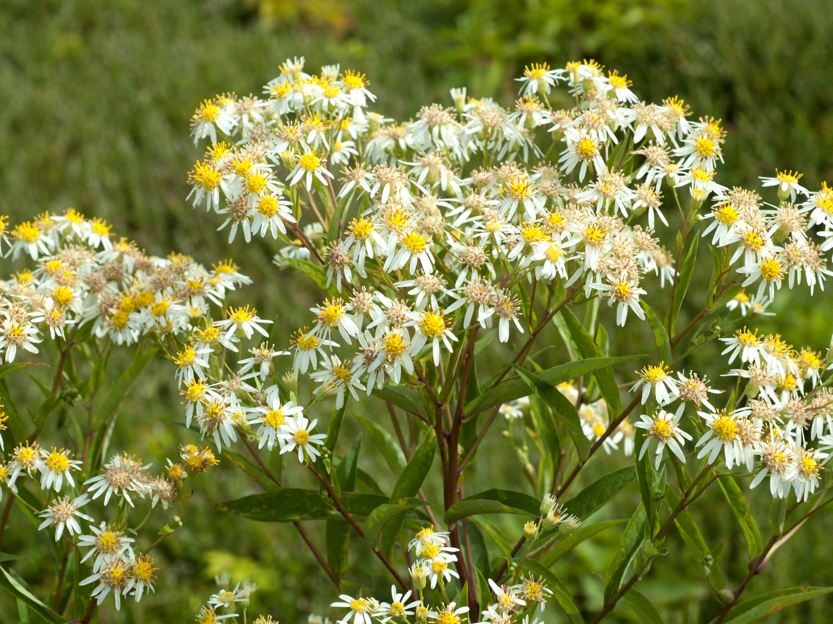 Inflorescence, capitules à fleurs centrales jaunes avec des rayons blancs