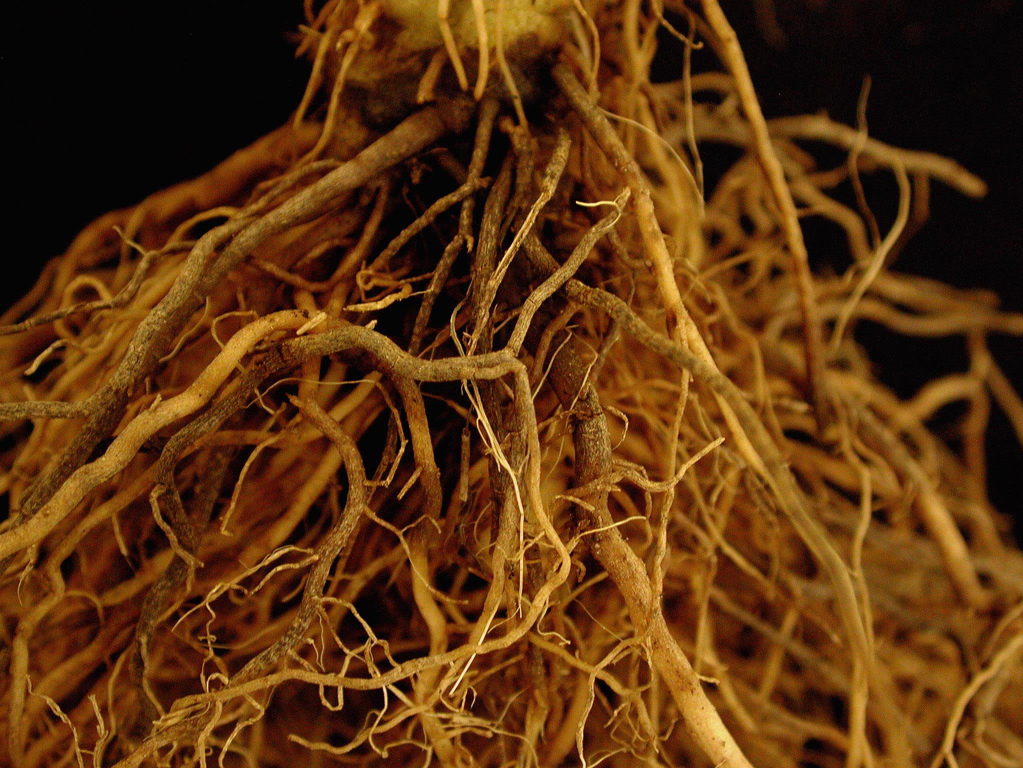 Une vue rapprochée des racines montre un cortex renflé, brun qui apparait comme un manchon liégeux sec sur de longues sections des racines. Les observations microscopiques ont révélé la présence du champignon Pyrenochaeta lycopersici, responsable de la racine liégeuse chez la tomate.