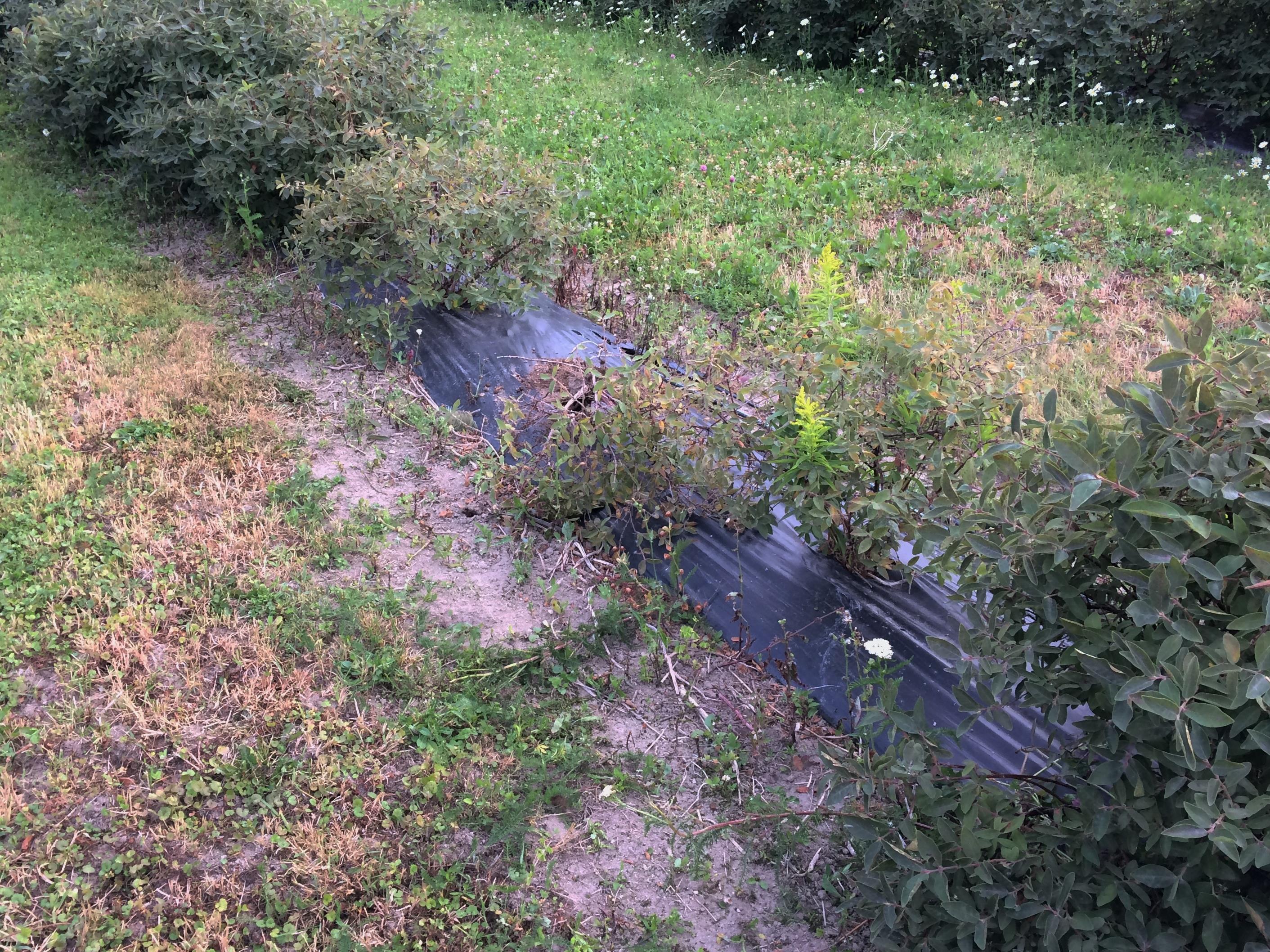 Dommages causés par des vers blanc dans un champ de camérisiers.
