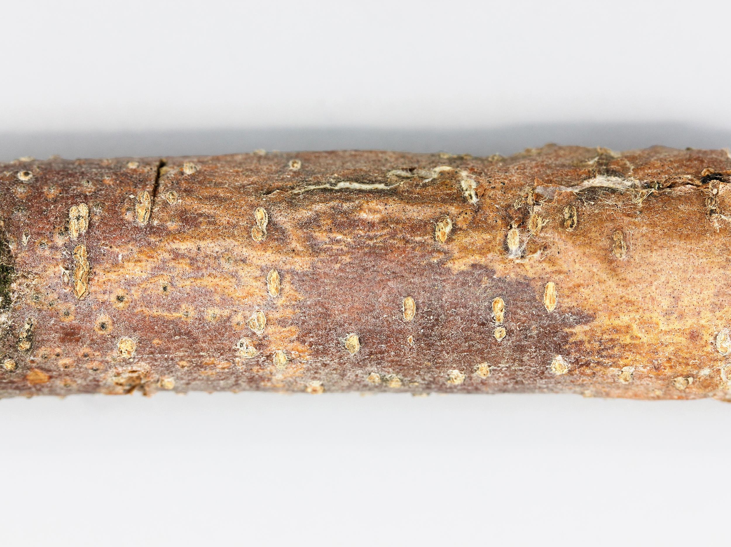 Rougissement et fentes sur rameau de pommier