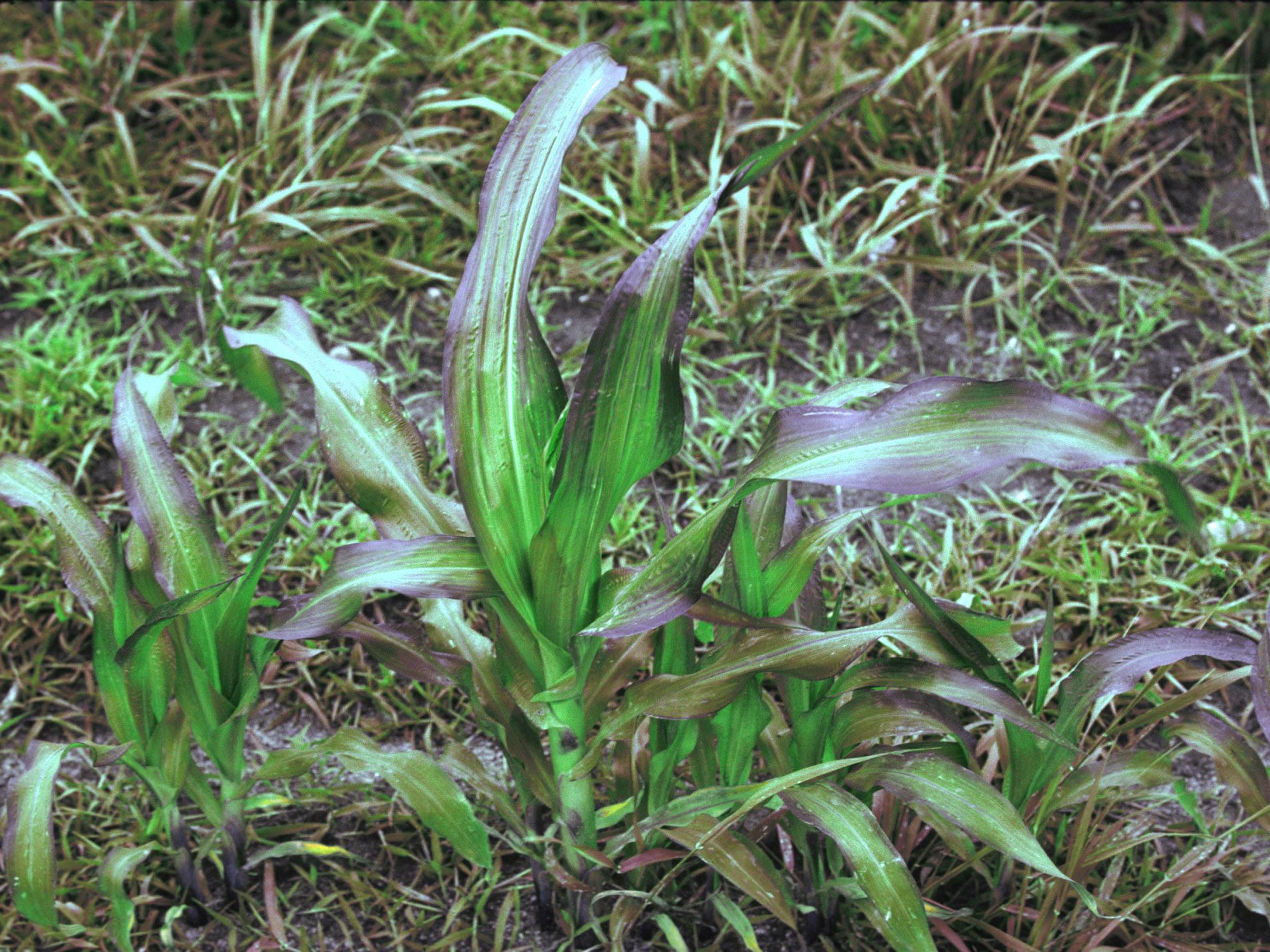 Sur de jeunes plants de maïs grain et fourrager, une coloration pourpre à mauve est visible à la marge et sur le limbe de tous les niveaux de feuilles, mais est moins prononcée sur la nouvelle feuille. Cette anomalie de coloration est également observée sur les mauvaises herbes avoisinantes. Ce symptôme est caractéristique de la carence en phosphore chez le maïs.