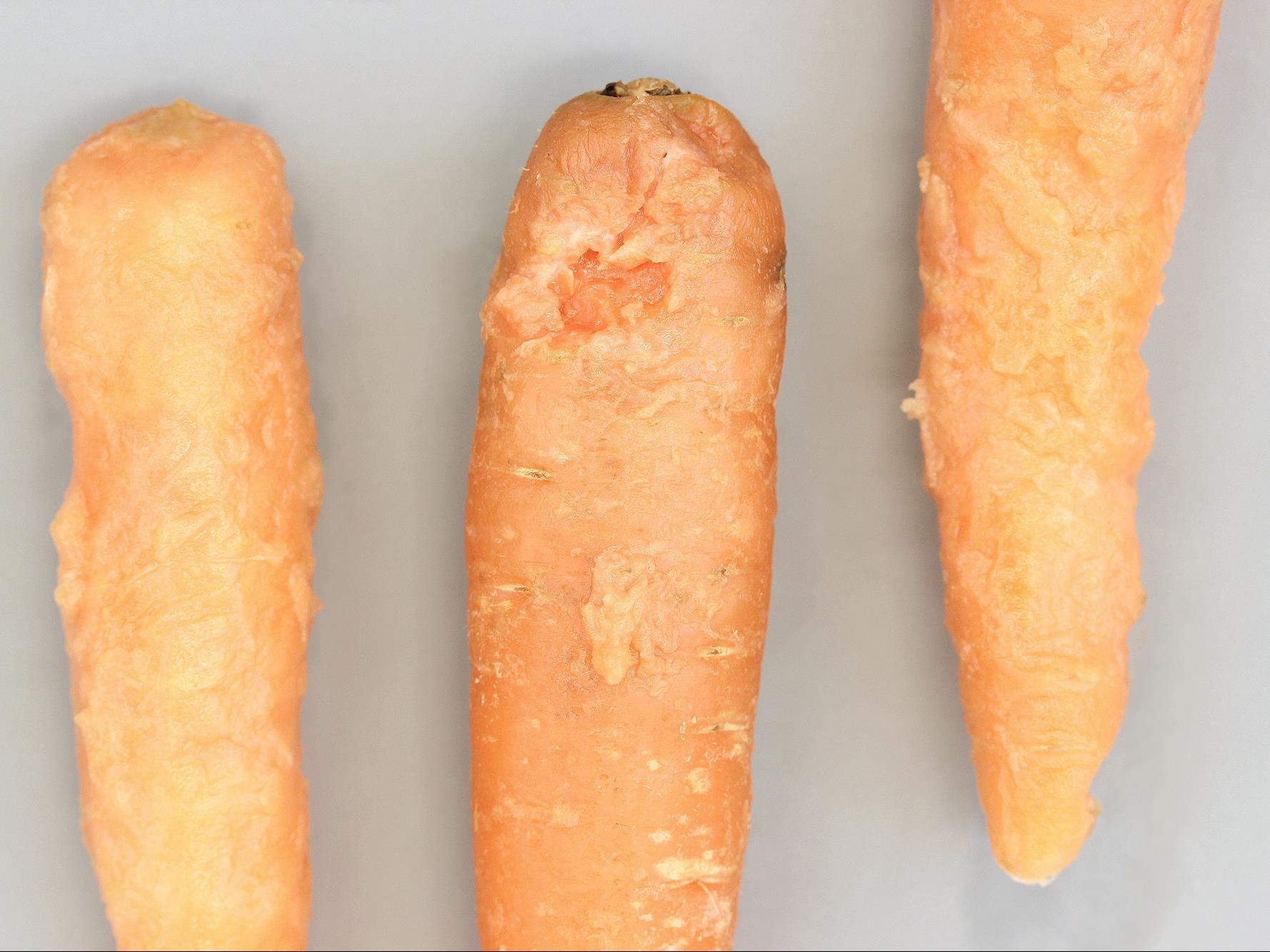 L’épiderme des carottes provenant d’un entrepôt présente des zones de pourriture molle qui progresse dans les racines. Les tissus se désagrègent dans ces zones. Les tests de laboratoire ont révélé la présence de bactéries secondaires et des levures. Les bactéries secondaires n’ont pas la capacité de pénétrer directement les tissus végétaux sains, car elles ne sont pas pectinolytiques, mais peuvent dégrader des tissus déjà endommagés. Quant aux levures, elles sont rapportées pour causer des pourritures d’entreposage chez la carotte. Leur développement est favorisé par des conditions chaudes et humides. Des pourritures liées aux levures apparaissent généralement lorsque les conditions d’entreposage sont inadéquates en matière de température et de ventilation.