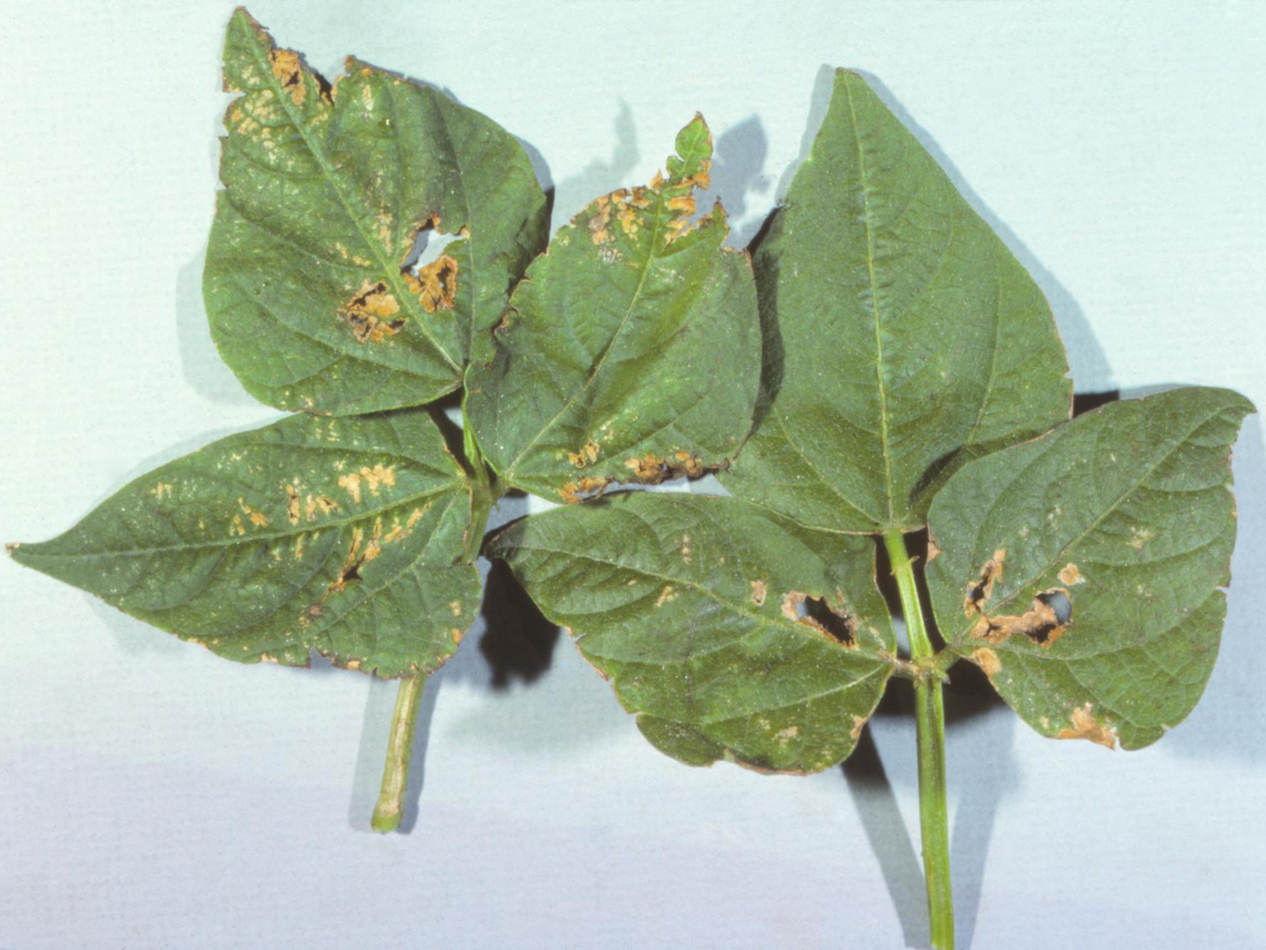 Nécroses et déchirures sur folioles de haricot