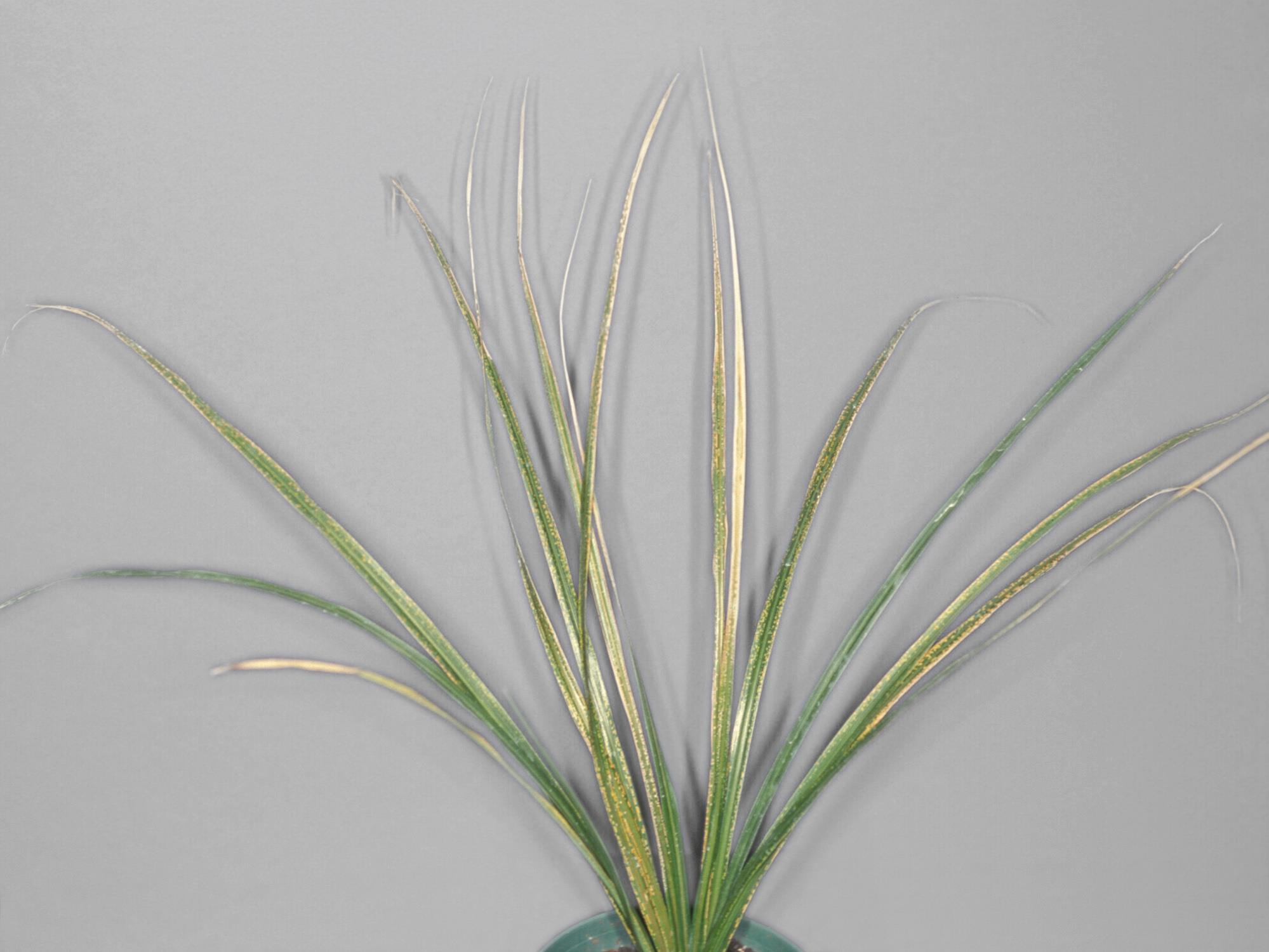 Sur un plant de dracéna des jardins cultivé en serre, présence de nombreuses taches rectangulaires de 1 à 2 mm distribuées principalement à la marge. Les taches sont jaunes à orange, claires, translucides et d’aspect vitreux. L'apex des feuilles est desséché. La base des feuilles présente peu de symptômes. Toutes les feuilles sont affectées. La distribution des symptômes sur les feuilles présente un patron très symétrique de l’extrémité vers le centre. Le résultat des tests de laboratoire s’est avéré négatif pour la détection d’agents pathogènes. Il s'agit probablement du ‘’flecking’’ qui serait en lien avec une intensité lumineuse trop intense. Plusieurs producteurs serricoles rapportent ce problème entre les mois de janvier et avril.