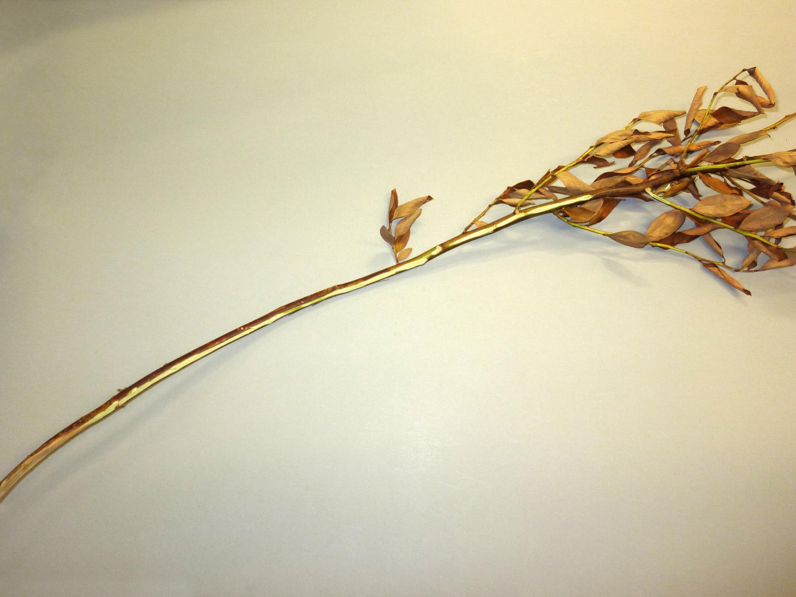 Brunissement du bois dans la partie basale d'une tige de bleuet en corymbe