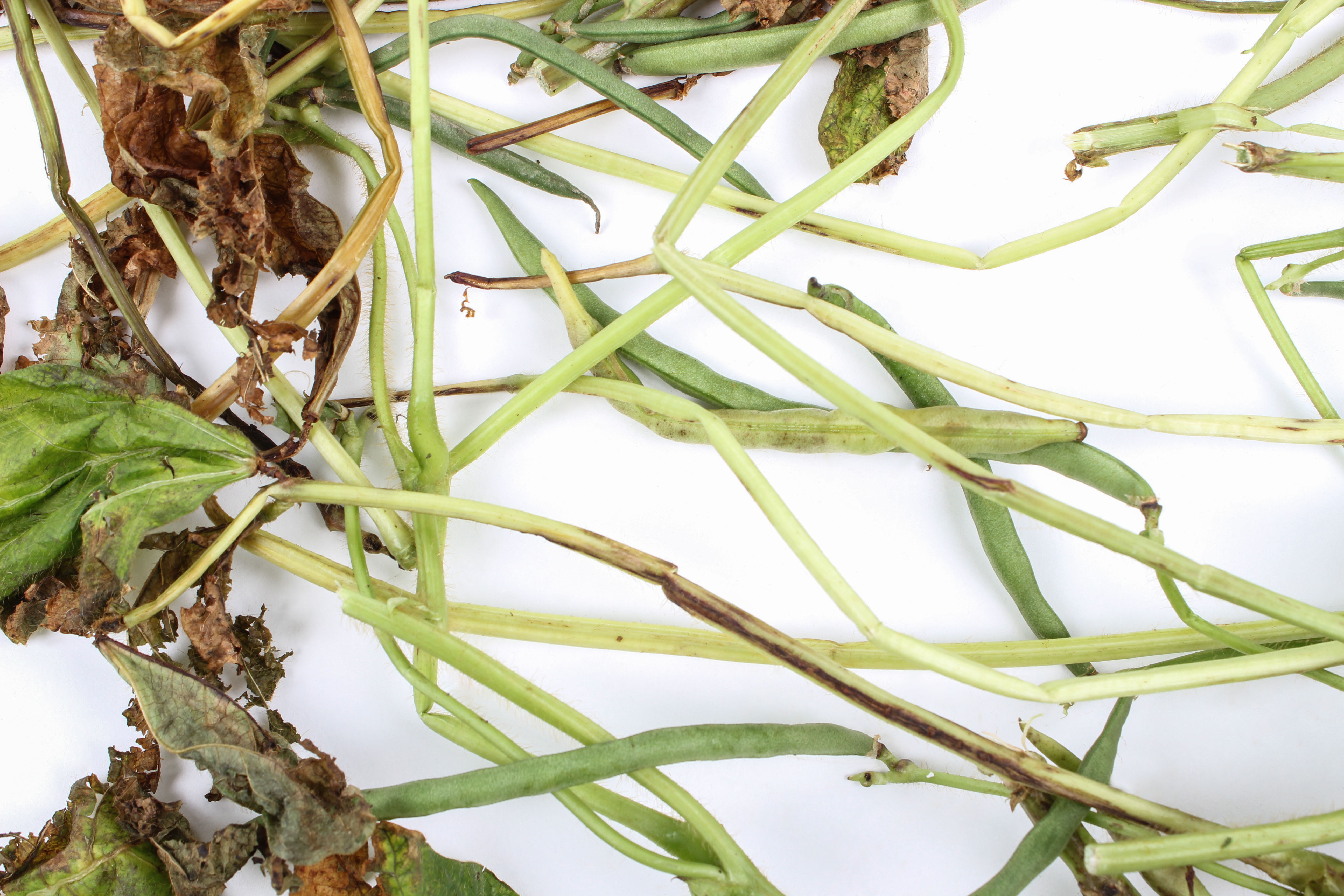 Brûlure sur feuilles et tige de haricot