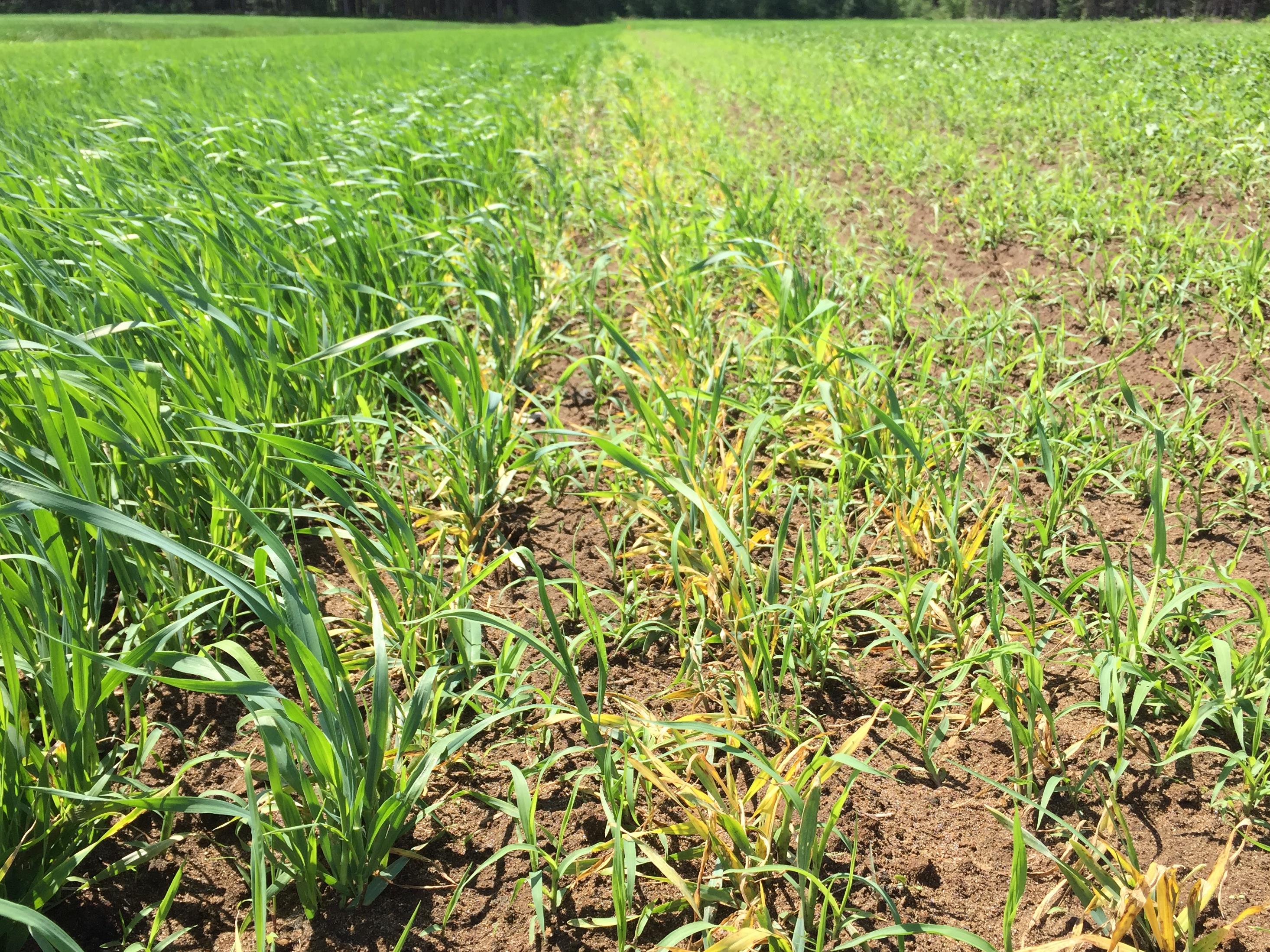 Dans un champ d’orge, quelques rangs situés directement à côté d’un champ de quinoa présentent des plants dont les feuilles sont jaunies et/ou brûlées. Le champ de quinoa voisin a reçu une application de l’herbicide ASSUREmdII (avec surfactant). Les symptômes dans le champ d’orge sont apparents environ deux semaines après la pulvérisation. Ceux-ci seraient attribuables à la dérive de l’herbicide, non homologué pour la culture d’orge.