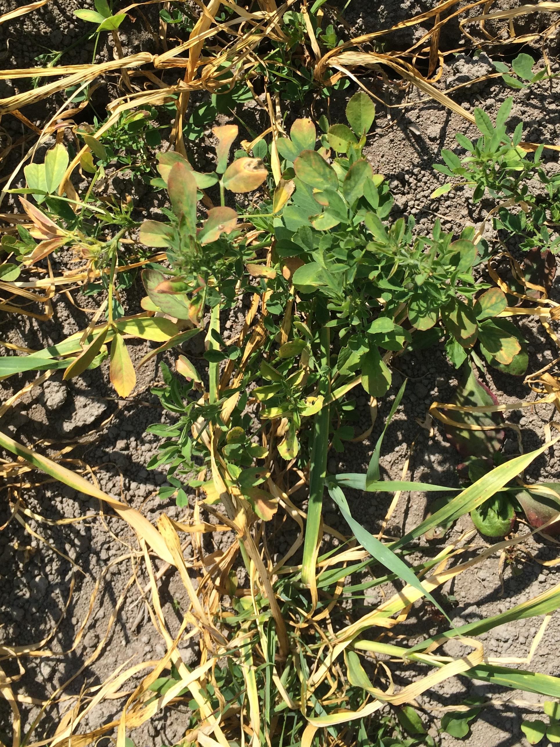Dans un champ d’orge grainée, les plants d’orge présentent un jaunissement à blanchiment ainsi que des brûlures. Environ 40% des plants présentent ces symptômes, limités à certaines zones, assez diffuses dans le champ. Les plants de luzerne sont aussi atteints à quelques endroits mais présentent généralement peu ou pas de symptômes. Le dosage chimique réalisé a révélé la présence de glyphosate dans les tissus des plants d’orge, en quantité suffisante pour causer les symptômes observés. La phytotoxicité observée serait le résultat d’une dérive de glyphosate.