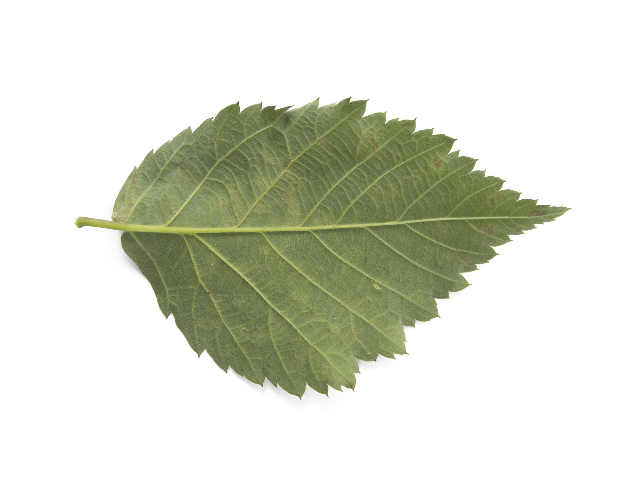 Plages légèrement décolorées sur la face inférieure d'une feuille de mûrier.