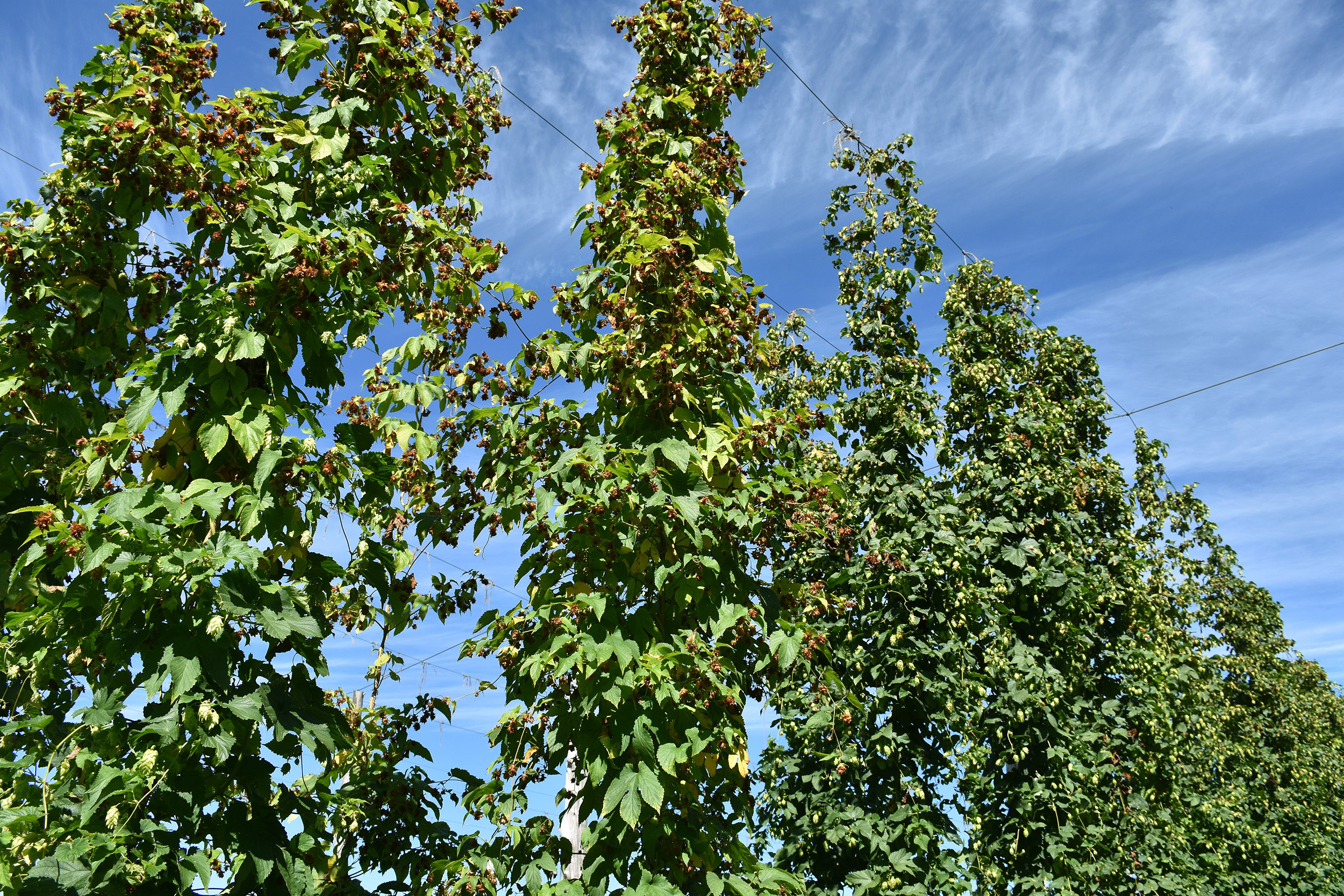 Inflorescences de houblon femelles atteintes de la brûlure à halo.