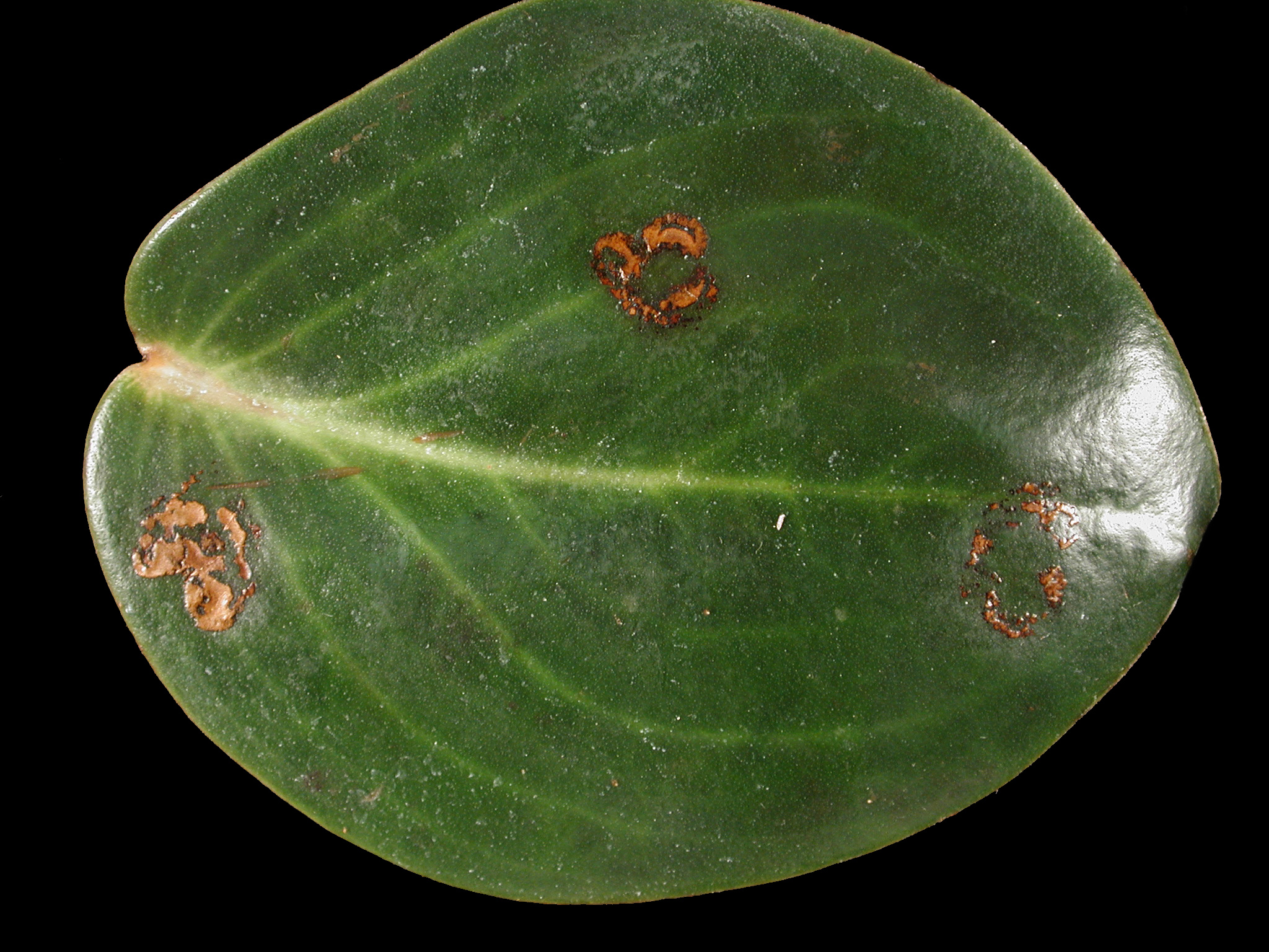 Sur les feuilles, les taches en forme d'anneaux font penser à un symptôme de malade virale.