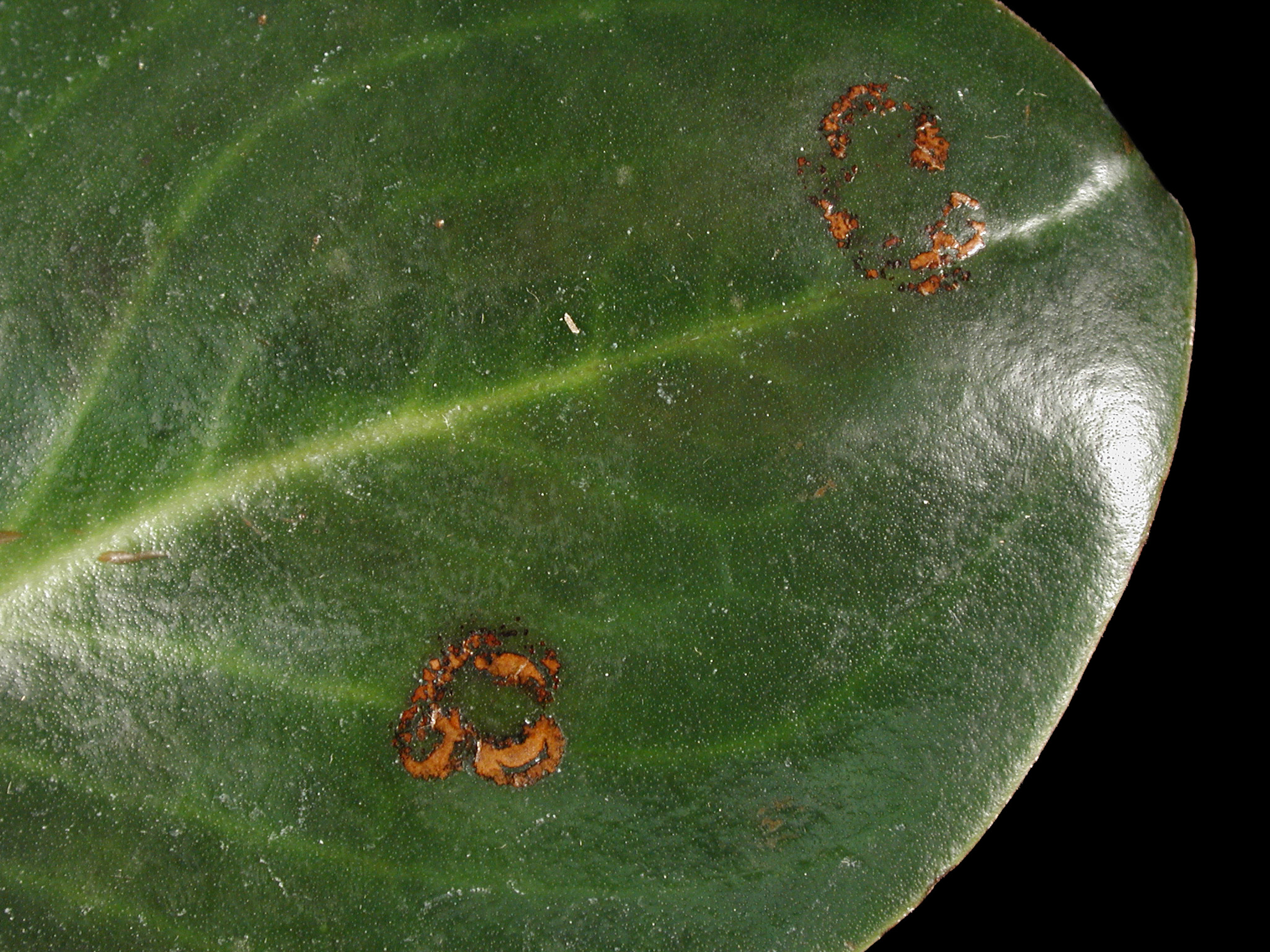 Sur les feuilles, les taches en forme d'anneaux font penser à un symptôme de malade virale.