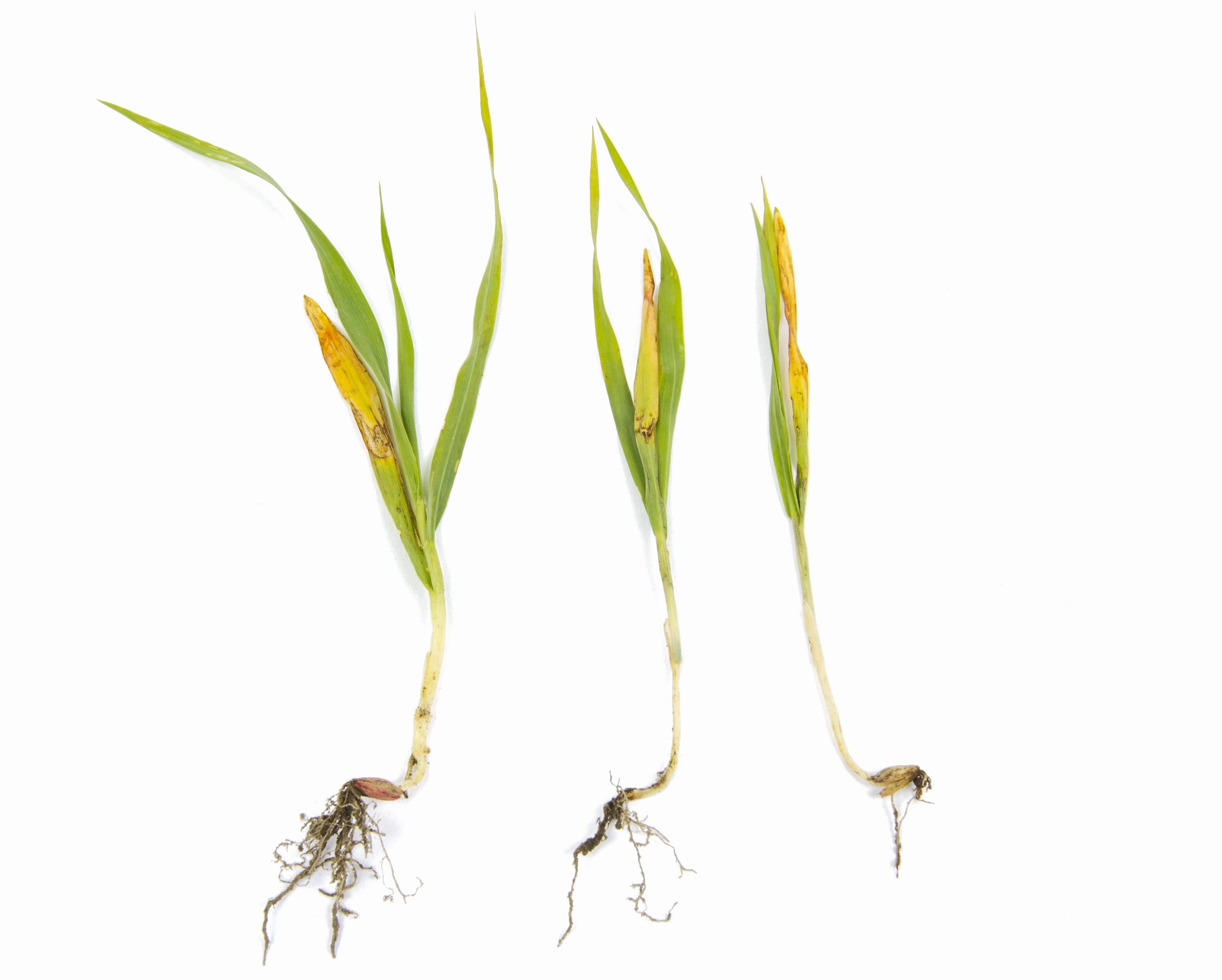 Des plants d’orge montrent un jaunissement important des feuilles basales, sur presque toute leur longueur, partant de l'apex vers la base du limbe. Tout le champ présente ces symptômes sur les plants. Un dosage chimique a permis de déceler la présence de fomésafène, en quantité suffisante pour causer des dommages sur la culture. Des traces de cyantraniloprole ont également été trouvées dans les tissus. Ces deux pesticides ne sont pas homologués dans la culture de l’orge. Les dommages observés sont liés au fomésafène qui provoque normalement un jaunissement (ou effet de bronzage) et/ou de petites taches sur les tissus des plantes sensibles avec lesquelles il entre en contact. Le jaunissement évolue vers un brunissement et la nécrose des zones touchées. Les nouvelles feuilles sont intactes, le fomésafène étant un herbicide de contact.