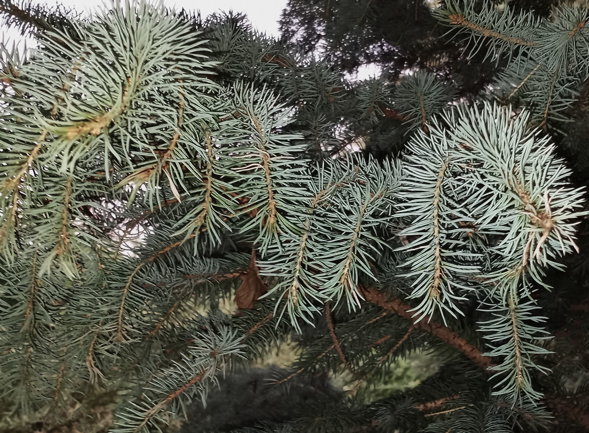 Les tiges et les rameaux terminaux d'une épinette du Colorado (Picea pungens) sont courbés vers le bas (épinastie). Ce symptôme est apparu graduellement et est généralisé sur l'arbre. Une application de dicamba, un herbicide phytohormonal, a été effectuée sur la pelouse à proximité de l'arbre, dans des conditions de chaleur et de sécheresse importantes. Un dosage chimique a confirmé la présence de dicamba, à une concentration élevée dans les tissus de l'arbre, ainsi que de la perméthrine, un insecticide (groupe 3A), à une faible concentration, cinq semaines après l'application sur la pelouse. Les symptômes de malformation sont typiques de ceux retrouvés avec les herbicides phytohormonaux, tel le dicamba. Les conditions de déficit hydrique (sécheresse, chaleur, érosion éolienne, etc.) au moment de l'application ont accéléré la pénétration et le transport des produits à l’intérieur de l’arbre, ce qui a amené une malformation des tissus et éventuellement la lyse des cellules méristématiques (dessèchements, brûlures et défoliation), non visible ici. Dans une moindre mesure, la perméthrine peut amener un assèchement temporaire des tissus, aussi exacerbé par les conditions environnementales.