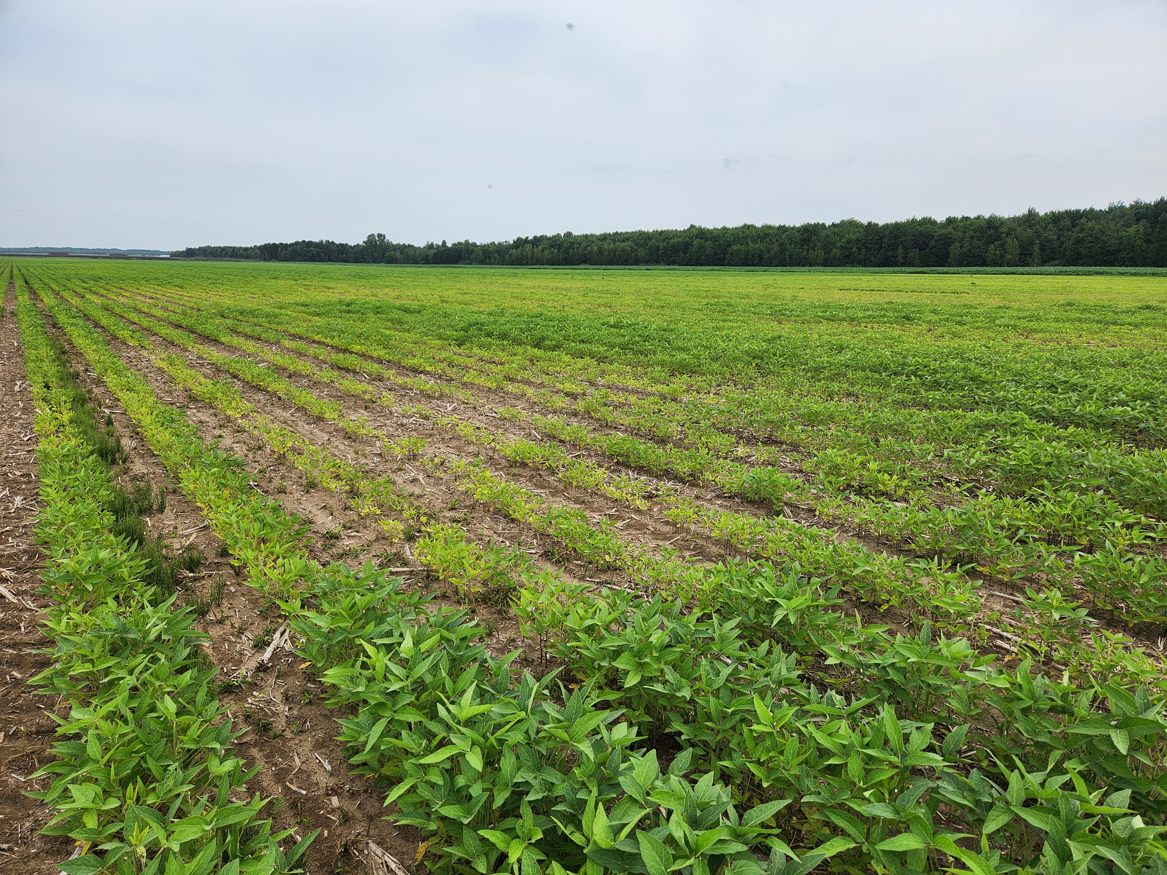 Champ de soya affecté par le nématode à kyste du soya (Heterodera glycines)