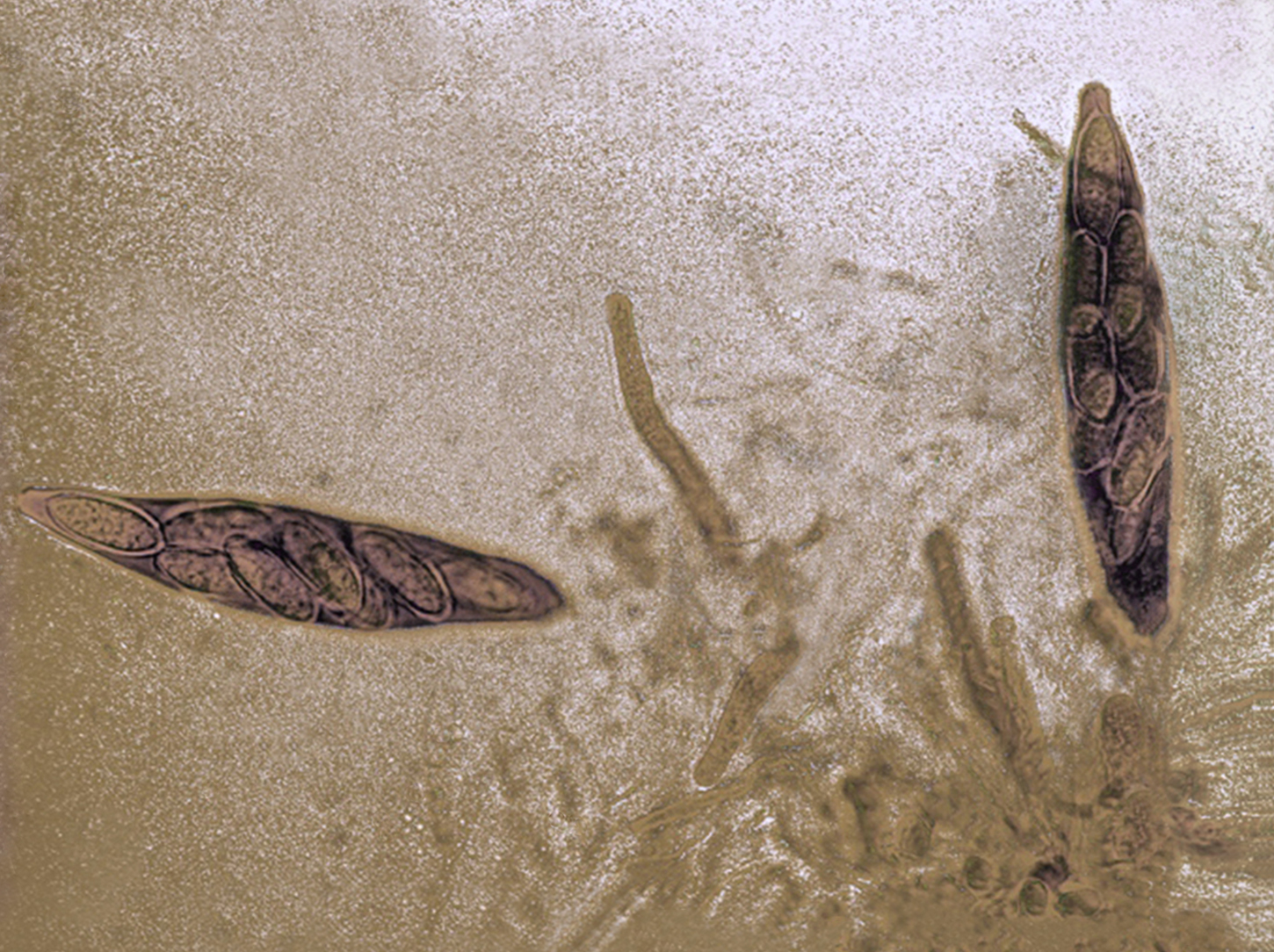 Asques de Botryosphaeria sp. contenant chacun huit ascospores