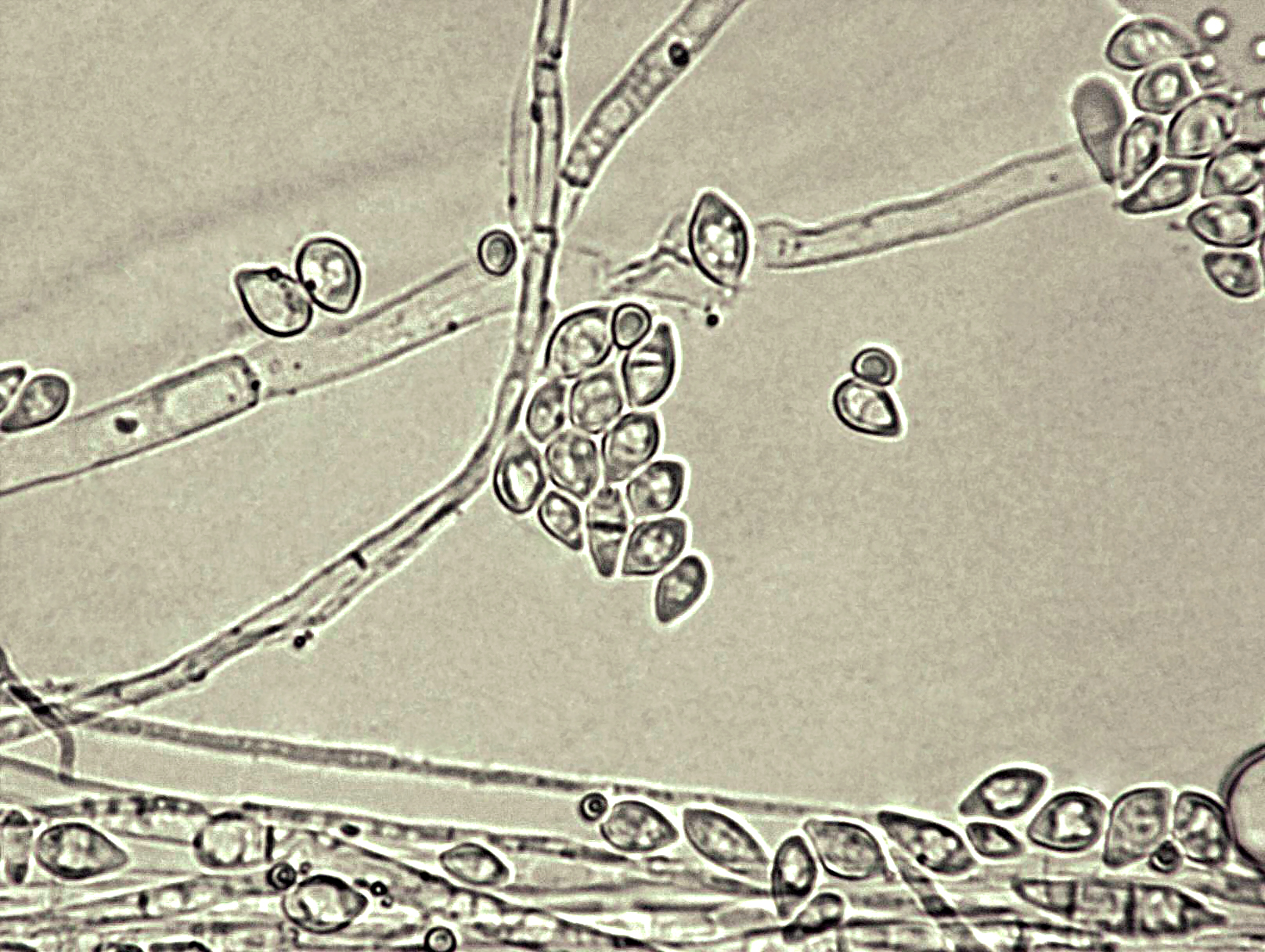Conidies (microconidies) et hyphes de Fusarium tricinctum
