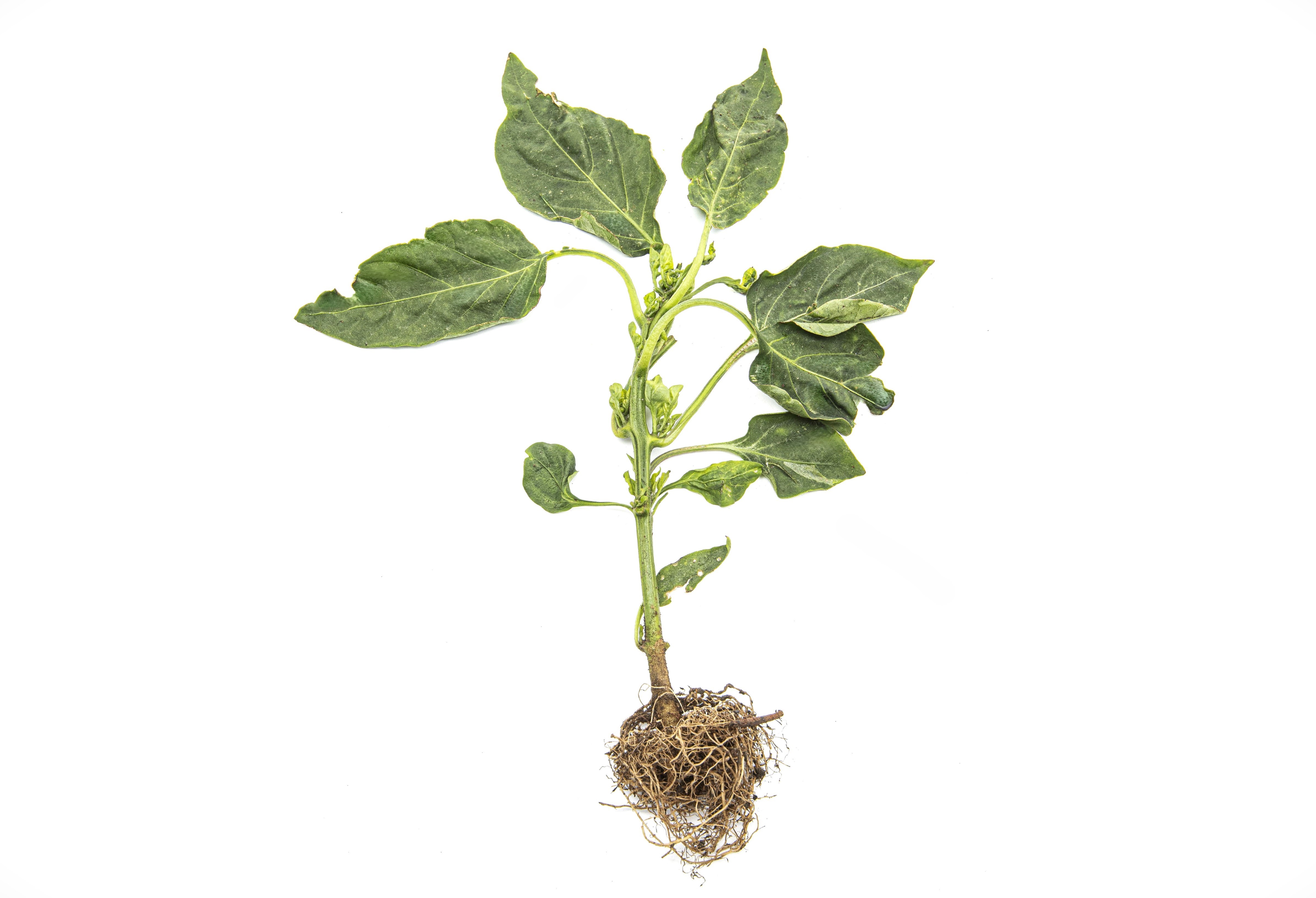 Les feuilles terminales d’un plant de poivron (piment doux) sont déformées, le limbe est gaufré et texturé. Un jaunissement, léger et diffus, internervaire, débute à la base du limbe et progresse vers l’apex. Par ailleurs, aucun des virus testés n'a été détecté dans les feuilles de cet échantillon. Le dosage chimique réalisé a révélé une concentration assez élevée de S-métolachlore dans les tissus du poivron. L’herbicide DUAL II MAGNUM (S-métolachlore) a été appliqué sur la culture : même s’il y est homologué, il peut provoquer des dommages qui débutent par un jaunissement internervaire, suivi d’un brunissement et une nécrose des tissus. Il peut également causer des malformations sur les parties terminales. Dans ce cas-ci, le printemps frais et humide peut avoir contribué à ralentir la métabolisation de l’herbicide dans la plante, accentuant ainsi les symptômes de phytotoxicité. Le flonicamide et le terbacil ont aussi été détectés à une concentration normale mais ne sont pas associés aux symptômes observés.