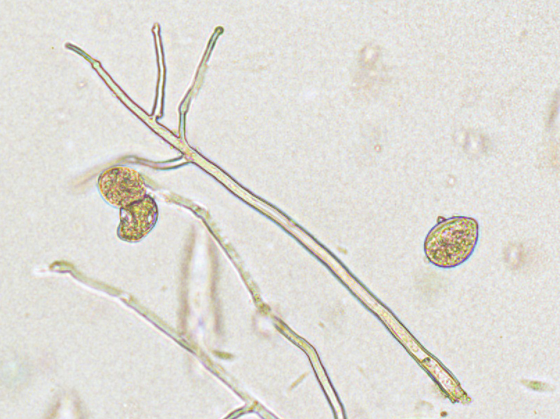 Sporanges et conidiophores de Phytophthora infestans