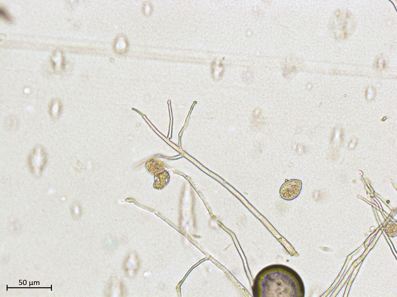 Sporanges et conidiophores de Phytophthora infestans
