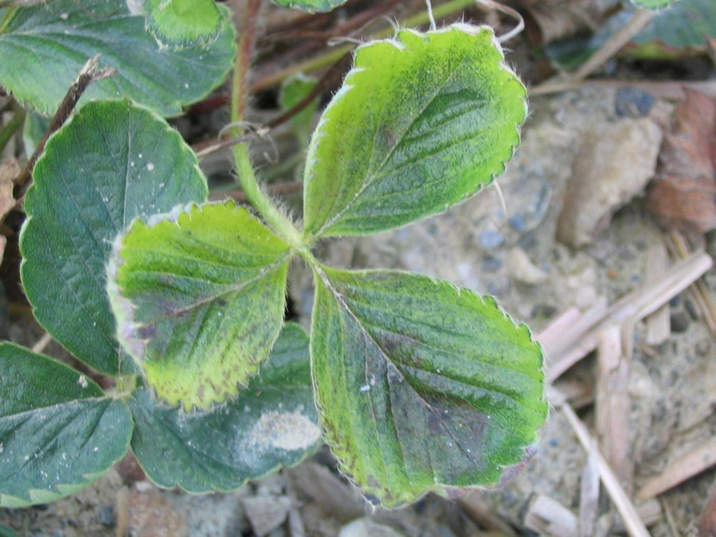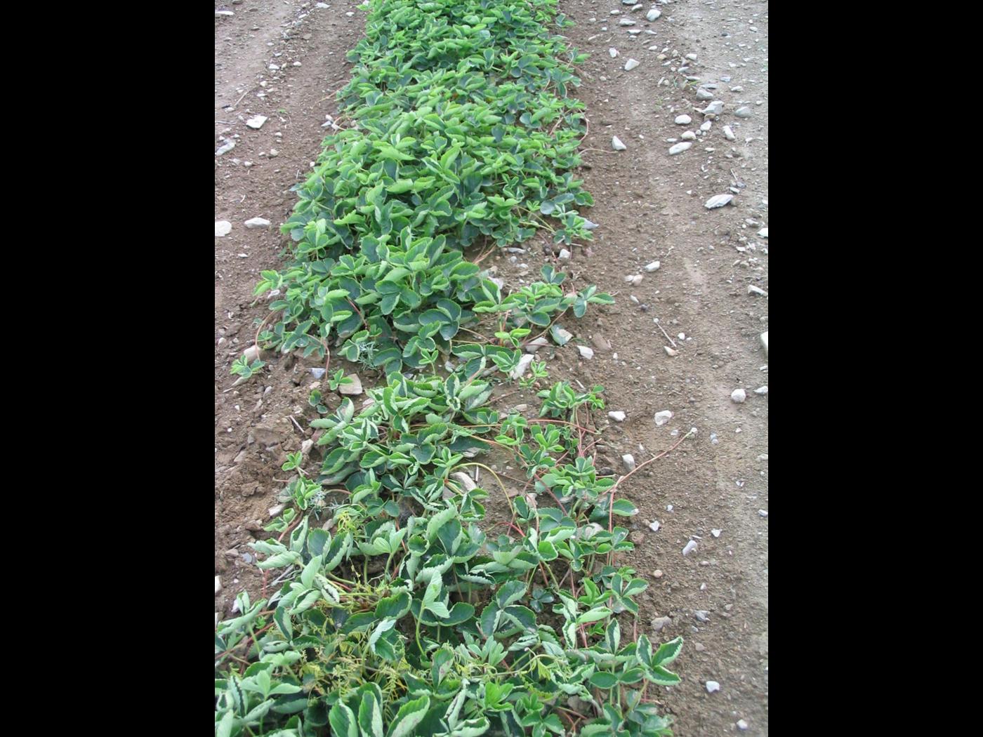Cas dicamba – Le dicamba est un herbicide considéré comme un régulateur de croissance et utilisé pour lutter contre les mauvaises herbes à feuilles larges, annuelles, bisannuelles et vivaces. Le dicamba est homologué dans la culture du maïs, des céréales, des prairies, du bleuet nain mais pas dans la fraise. Il peut être pulvérisé en prélevée ou en postlevée de la culture. Les herbicides régulateurs de croissance peuvent causer toute une variété d’anomalies de croissance chez les espèces sensibles, selon l’intensité d’exposition. Les symptômes de phytotoxicité se rapportant au dicamba sont des déformations (épinastie) de la tige et des pétioles, un renflement de la tige aux entre-noeuds et une élongation anormale de ceux-ci, et des feuilles en forme de cuillère. S'ensuit le jaunissement des points de croissance, le flétrissement et la nécrose des tissus. Parce que le dicamba est systémique, les symptômes qui lui sont attribuables apparaissent à la suite de la translocation du produit dans la plante, autant par le phloème que le par le xylème et particulièrement chez les plus jeunes feuilles, laquelle peut nécessiter d’un à trois jours. Les symptômes au champ présentent un gradient allant du plus au moins affecté, à mesure que l’on s'éloigne de la zone traitée.