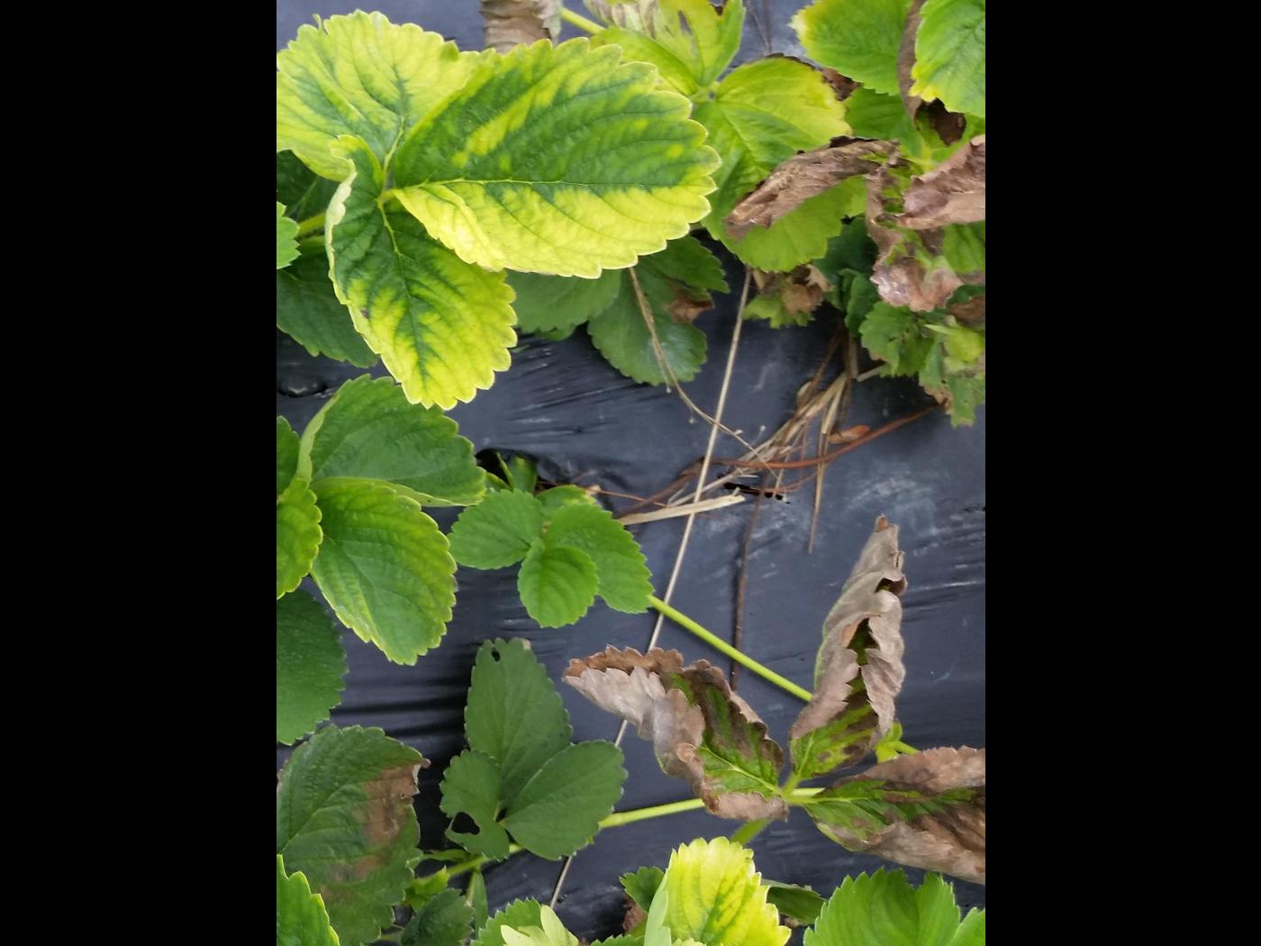 Feuille : anomalie de coloration (jaunissement à blanchiment entre les nervures ou jaunissement à la marge des vieilles feuilles puis dessèchement, brunissement et brûlure des tissus). Toute la feuille peut devenir jaune sauf les nervures qui demeurent vertes. Les vieilles feuilles sont plus affectées que les nouvelles. Les herbicides contenant de l’atrazine peuvent affecter tous les niveaux de feuilles.