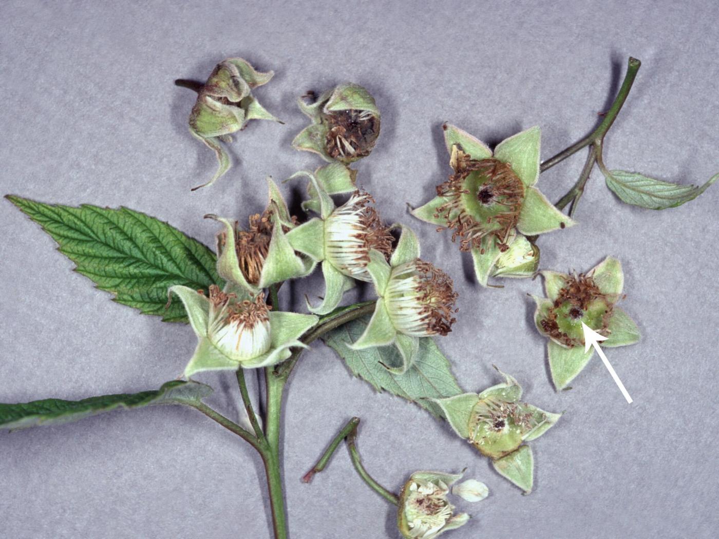 Chez le framboisier, les dommages observés sur les fruits peuvent être confondus avec ceux causés par la grenaille (virus). Sur les feuilles, les symptômes peuvent être confondus avec ceux causés par une phytotoxicité et une carence en bore (absence de gel).