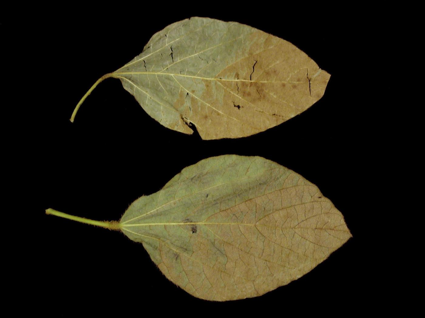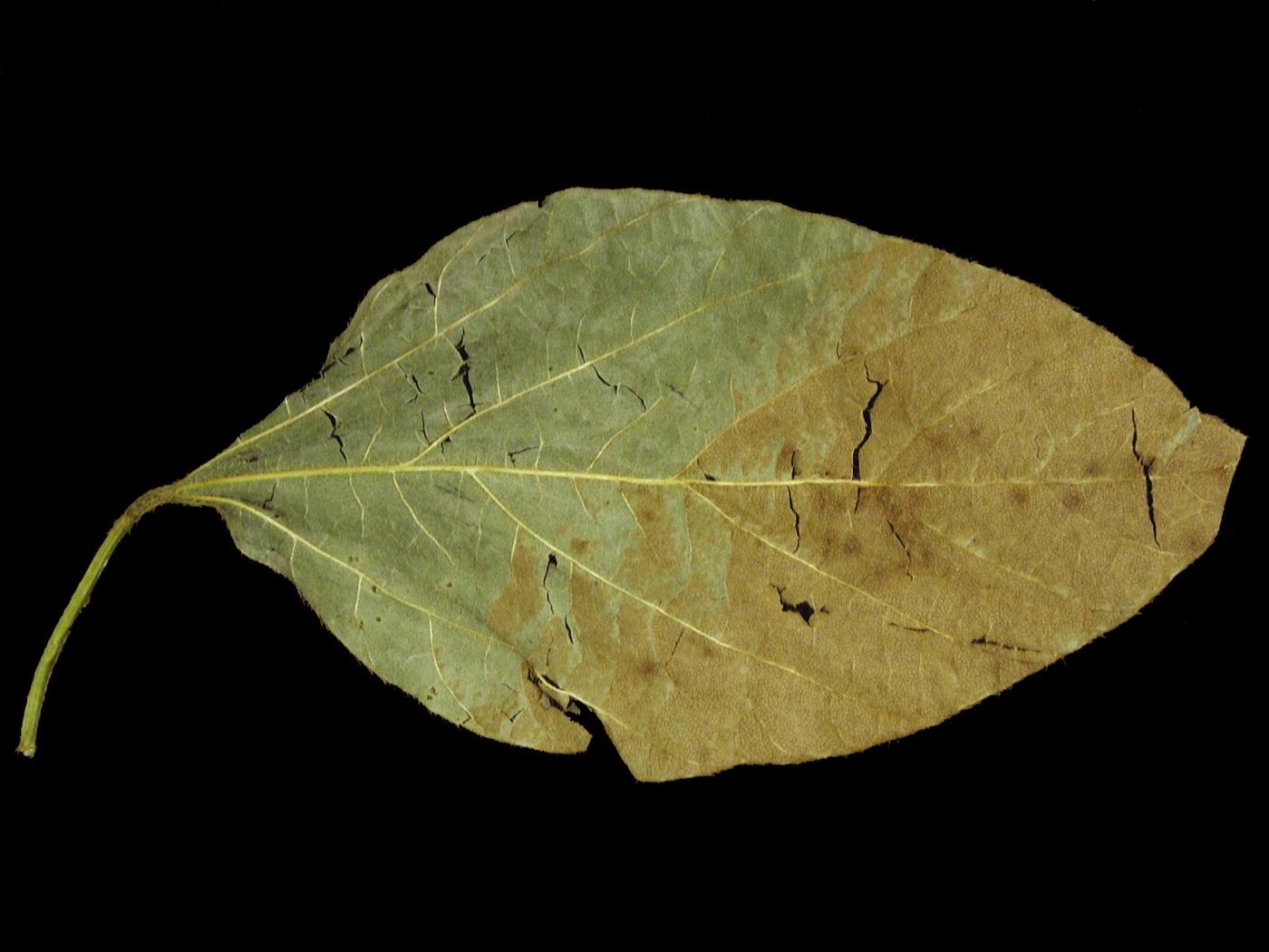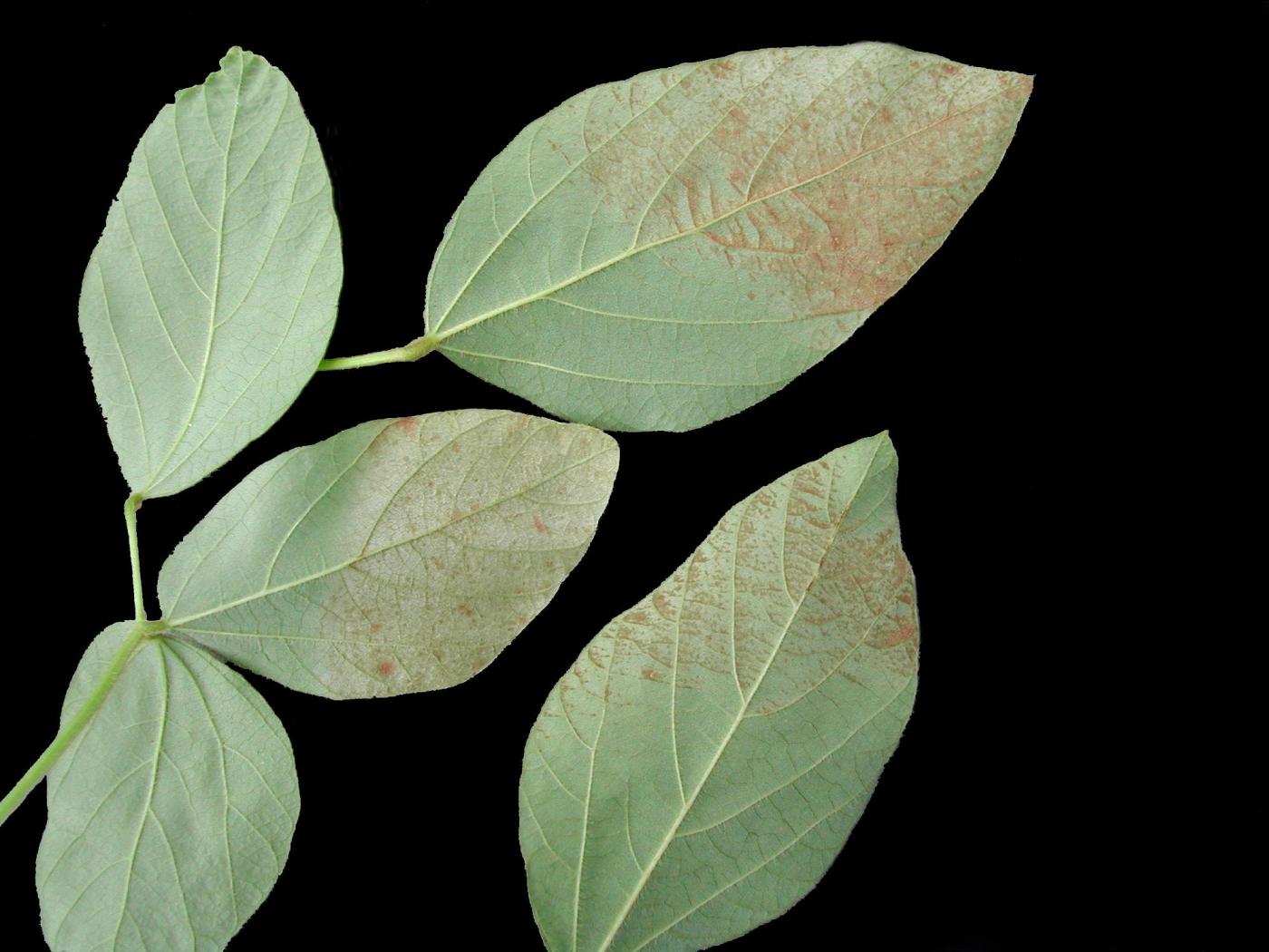 Sur les feuilles de soya, l’insolation peut être confondue avec l’ozone (bronzage des feuilles) et sur la tige, avec des infections bactériennes.