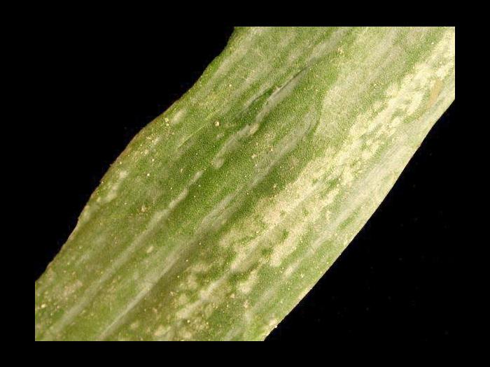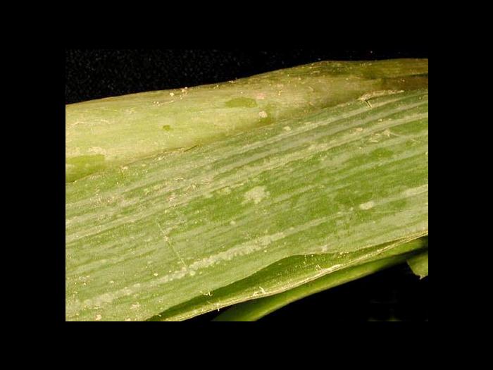 Légende: Stries longitudinales blanchâtres sur feuille d’oignon
