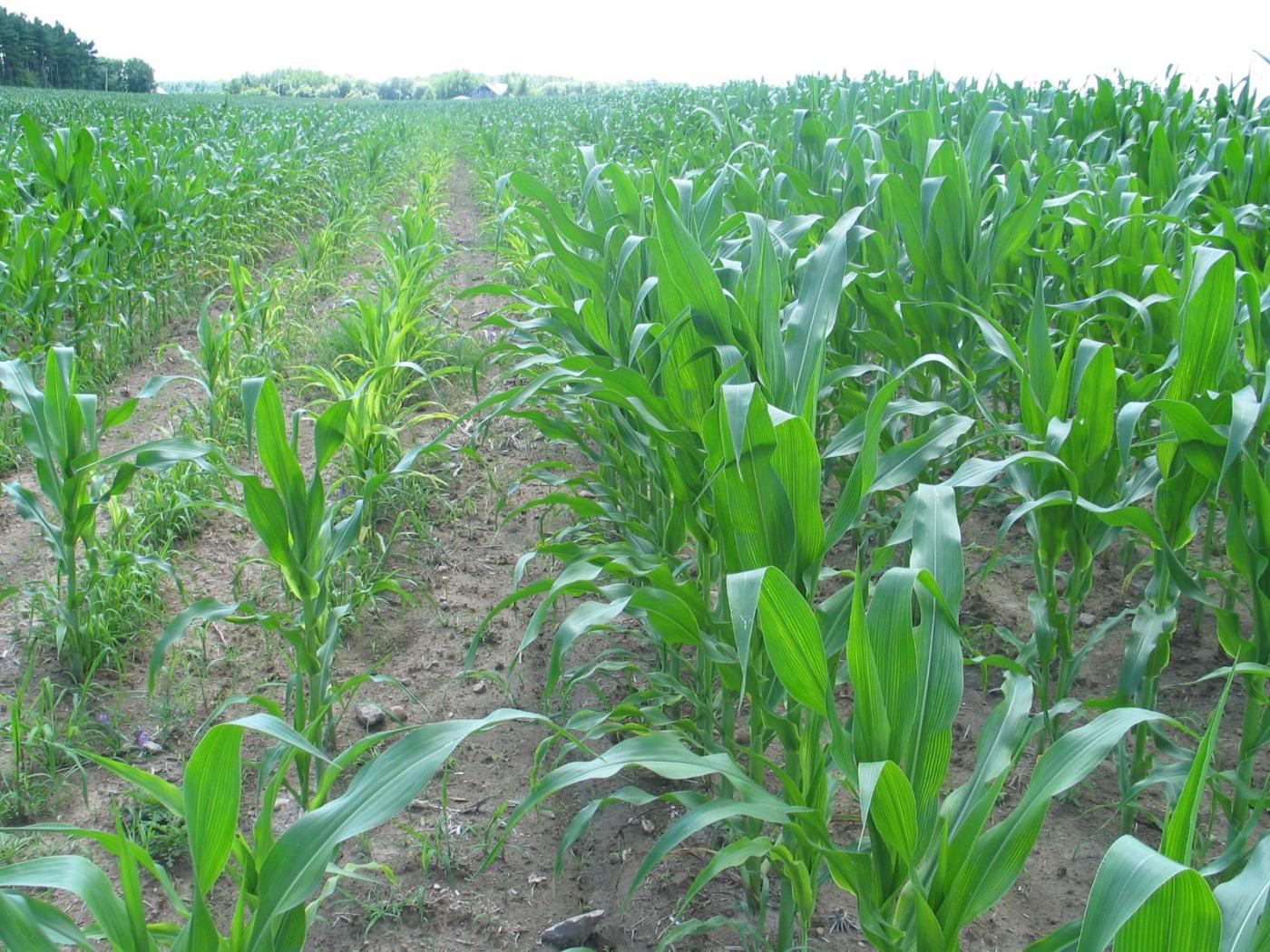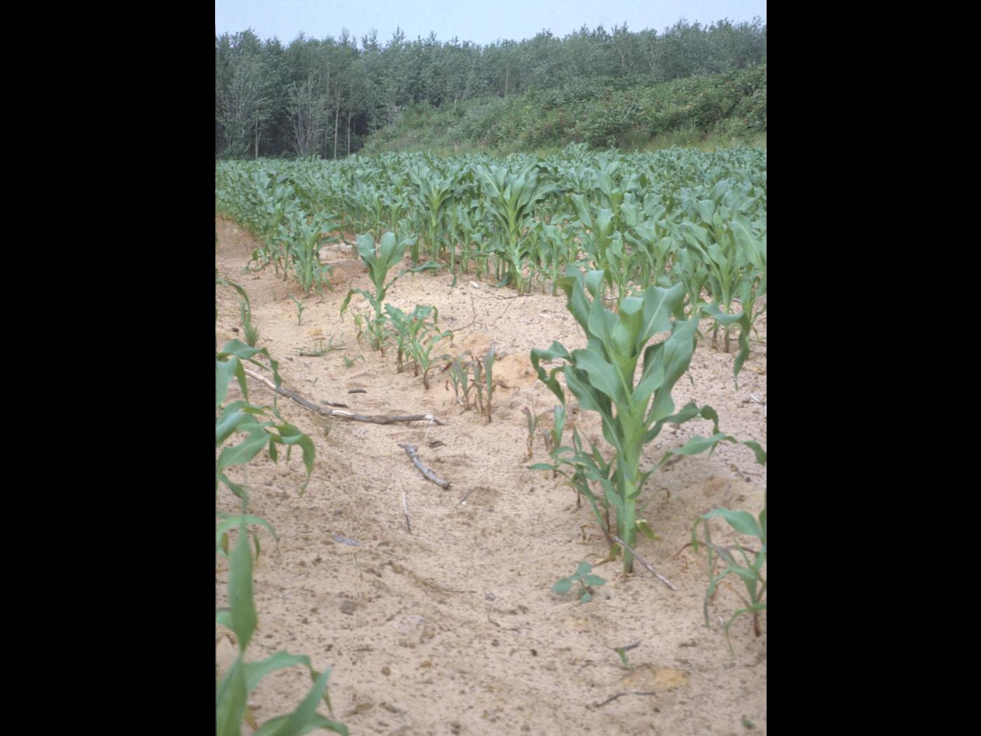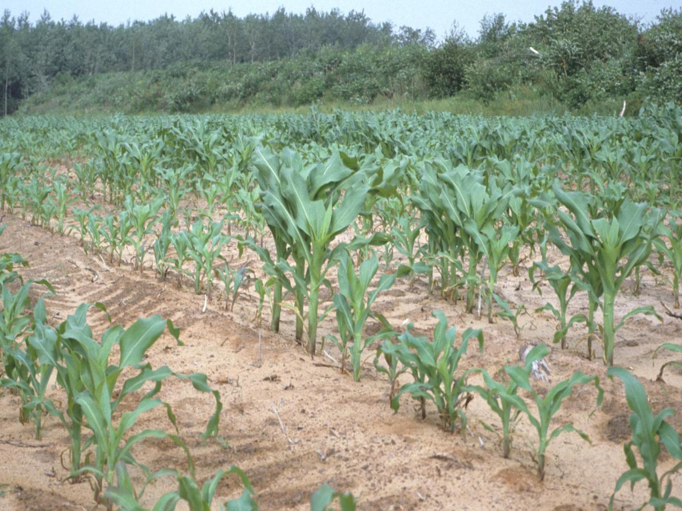 Chez le maïs, les symptômes d’un pH acide peuvent être confondus avec ceux d'une carence en phosphore (feuilles basales pourpres).