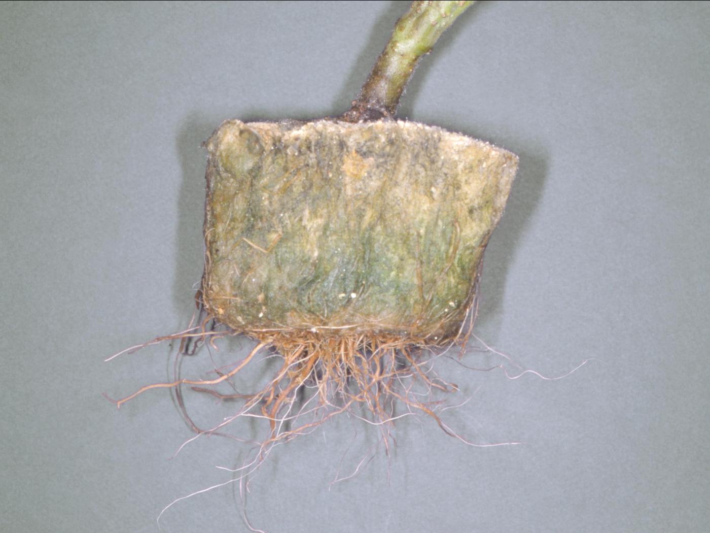Racine : faible développement, brunissement à noircissement et pourriture des racines et des radicelles.