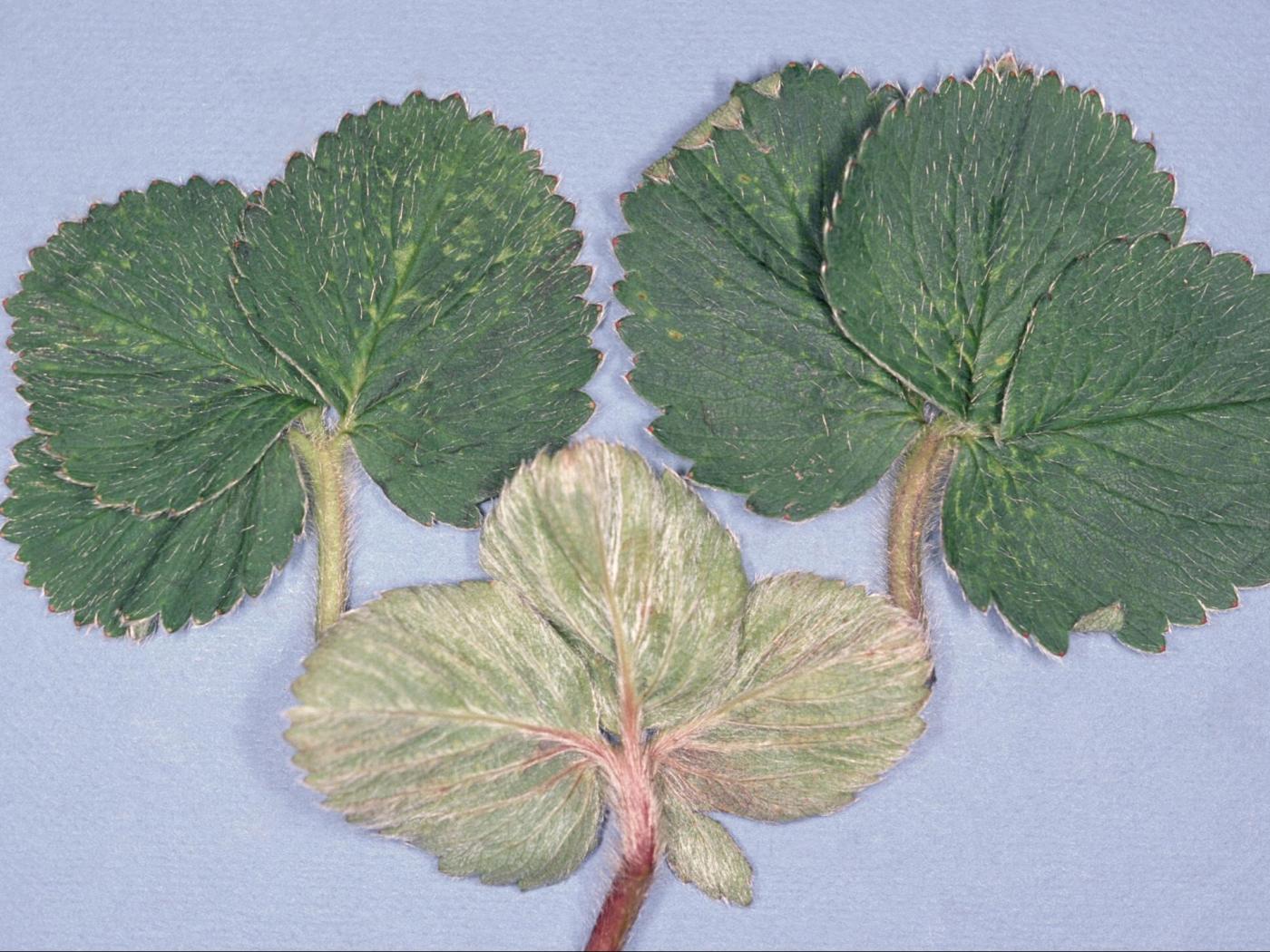Il est connu que certaines plantes réagissent à une augmentation soudaine de l’intensité lumineuse par un blanchiment du limbe. Il est possible que les symptômes observés sur les feuilles de fraisier soient la conséquence d’une réaction de la plante à un ou des facteurs de son environnement par exemple un ensoleillement intense et soudain et/ou une température élevée de l’air (chaleur). Les problèmes d’ensoleillement intense et de températures élevées de l’air sont occasionnels et mineurs et affectent surtout les jeunes plants.