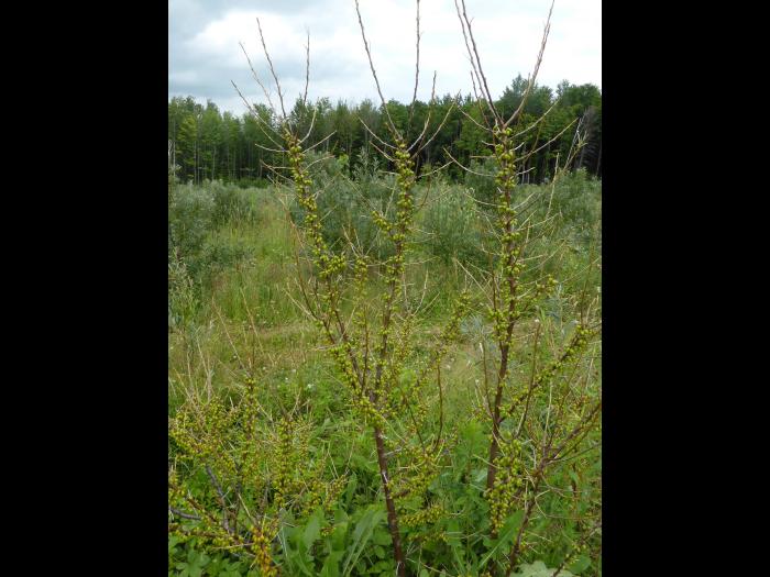 Plant d'argousier complètement défolié par des larves de la spongieuse