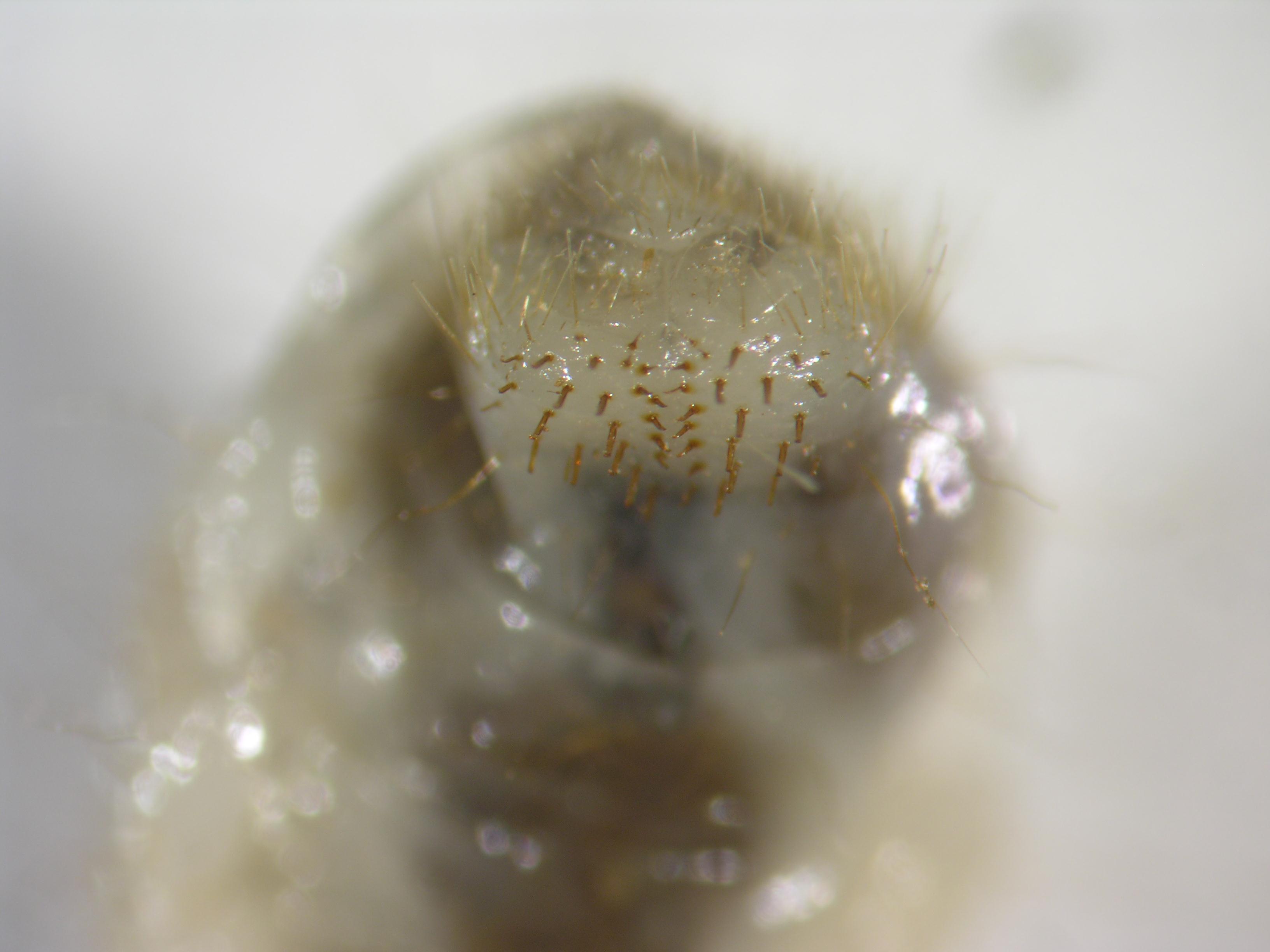 : Raster (dernier segment abdominal) : on observe deux rangées de soies robustes et parallèles.