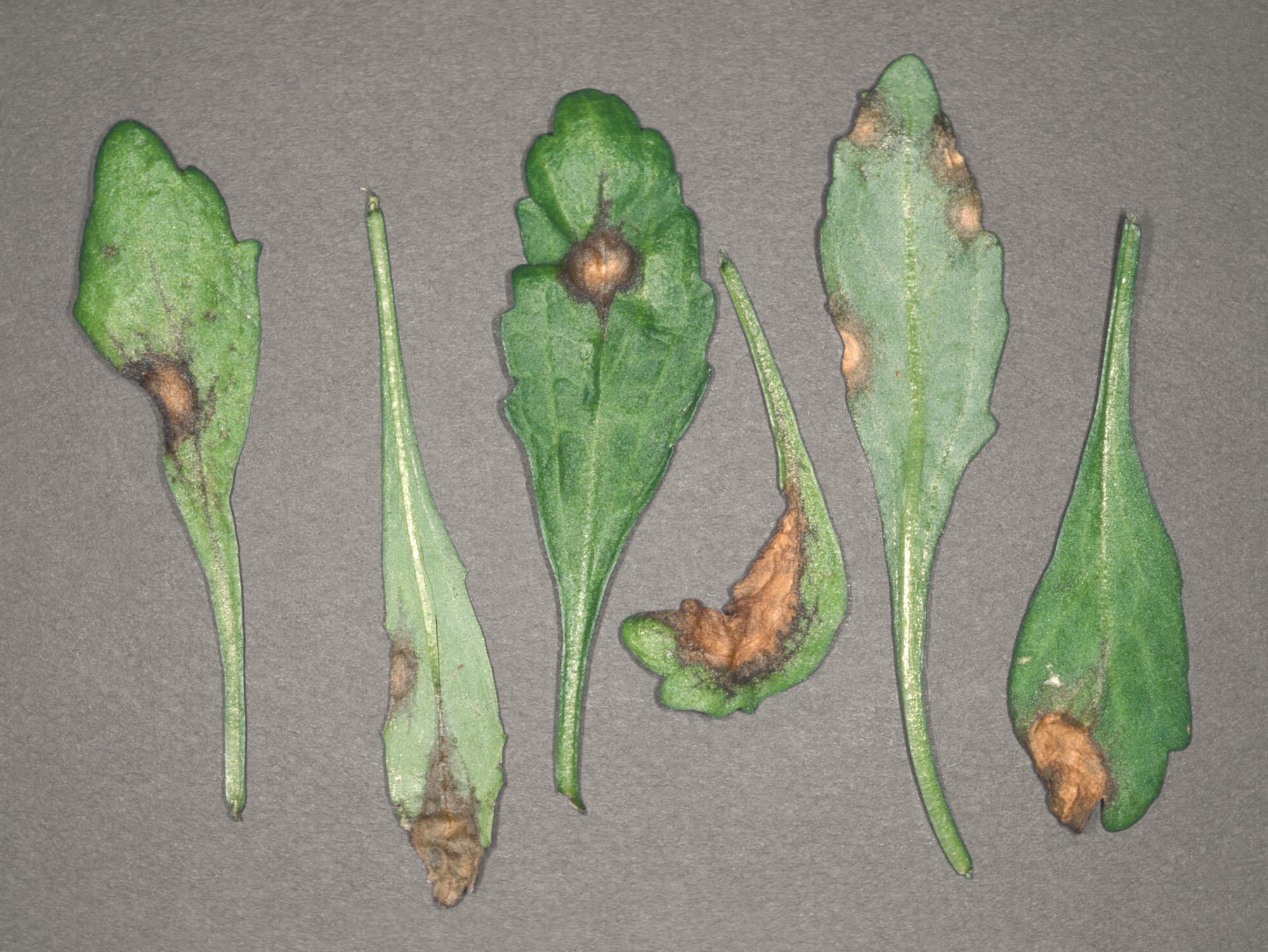 Légende: Taches et brûlures sur feuilles de chrysanthème