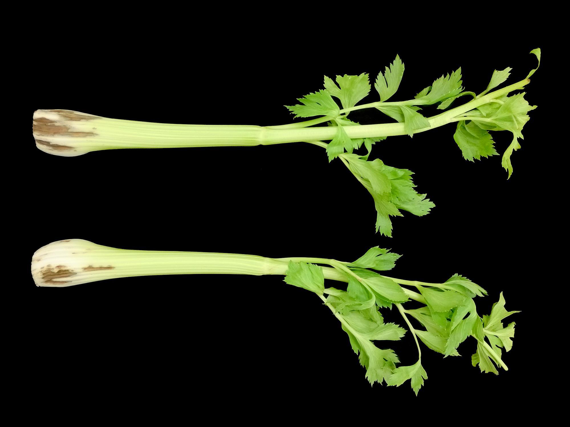 Description: Présence de zones de pourriture brune à la base des pétioles de céleri. Les zones s’étendent vers le haut jusqu’à environ le quart de la hauteur des pétioles. Les tissus sont mous à la marge des zones de pourriture. Les feuilles sont sans symptôme. Les tests de laboratoire ont révélé la présence de la bactérie Pseudomonas cichorii, responsable de la maladie du pétiole brun ("Brown stem") chez le céleri. La bactérie Pectobacterium sp. a également été détectée et est responsable des tissus mous à la marge des zones de pourriture.
